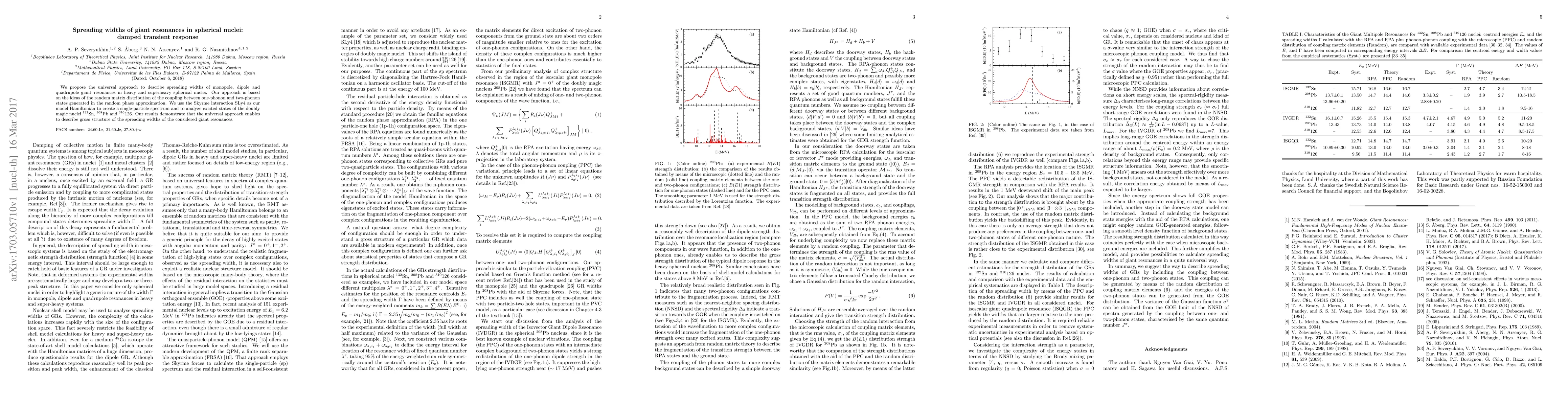 We propose the universal approach to describe spreading widths of monopole, dipole and quadrupole giant resonances in heavy and superheavy spherical nuclei. Our approach is based on the ideas of the random matrix distribution of the coupling between one-phonon and two-phonon states generated in the random phase approximation. We use the Skyrme interaction SLy4 as our model Hamiltonian to create a single-particle spectrum and to analyze excited states of the doubly magic nuclei $^{132}$Sn, $^{208}$Pb and $^{310}$126. Our results demonstrate that the universal approach enables to describe gross structure of the spreading widths of the considered giant resonances.