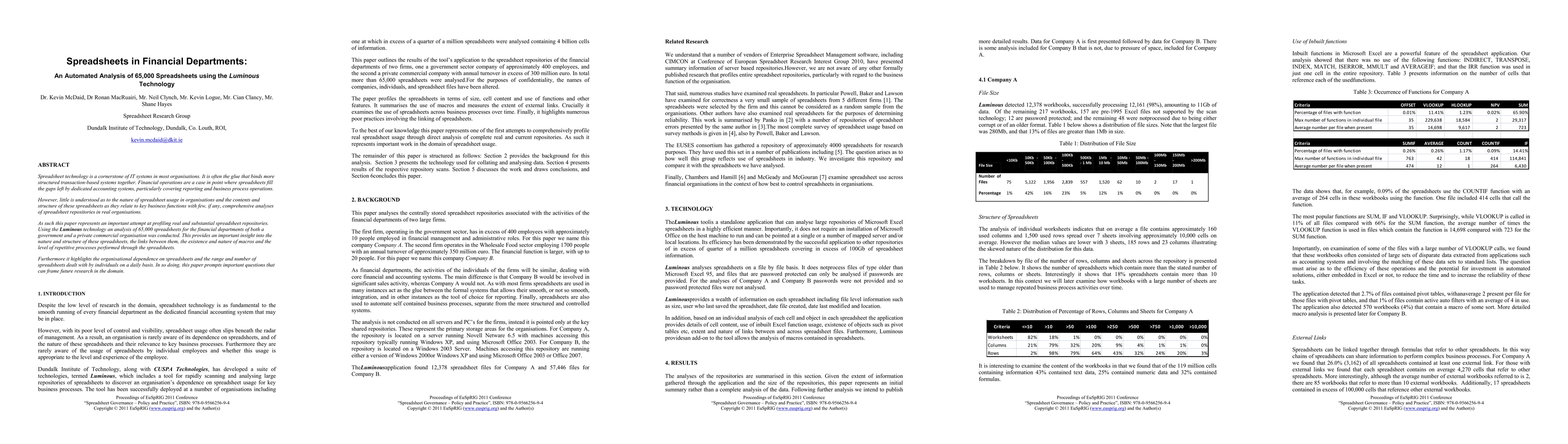 This paper analyzes 65,000 financial spreadsheets from government and private sectors using Luminous technology, revealing insights into their usage, structure, and interconnectivity, while highlighting the significant reliance on spreadsheets in daily operations. The study prompts further research into the organizational impact and optimization of spreadsheet-based financial processes.