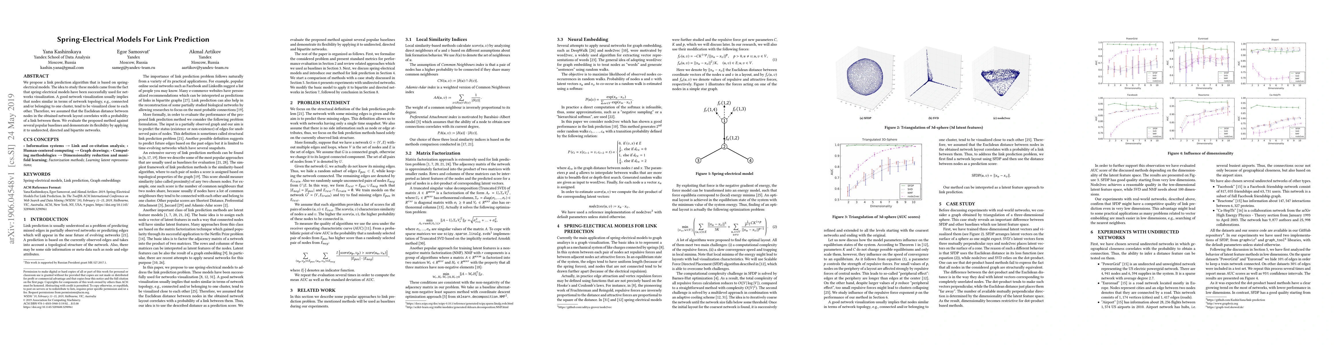 We propose a link prediction algorithm that is based on spring-electrical models. The idea to study these models came from the fact that spring-electrical models have been successfully used for networks visualization. A good network visualization usually implies that nodes similar in terms of network topology, e.g., connected and/or belonging to one cluster, tend to be visualized close to each other. Therefore, we assumed that the Euclidean distance between nodes in the obtained network layout correlates with a probability of a link between them. We evaluate the proposed method against several popular baselines and demonstrate its flexibility by applying it to undirected, directed and bipartite networks.