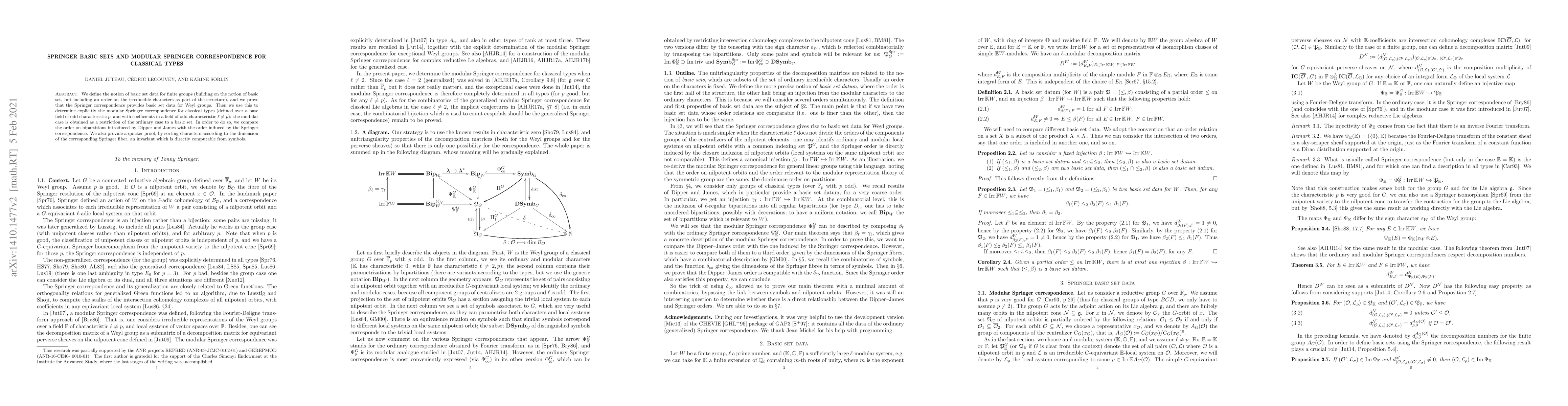 This paper defines basic set data for finite groups, incorporating an order on irreducible characters, and proves that the Springer correspondence provides this data for Weyl groups. It then determines the modular Springer correspondence for classical types by comparing different character orders and using a dimension-based approach to sort characters.