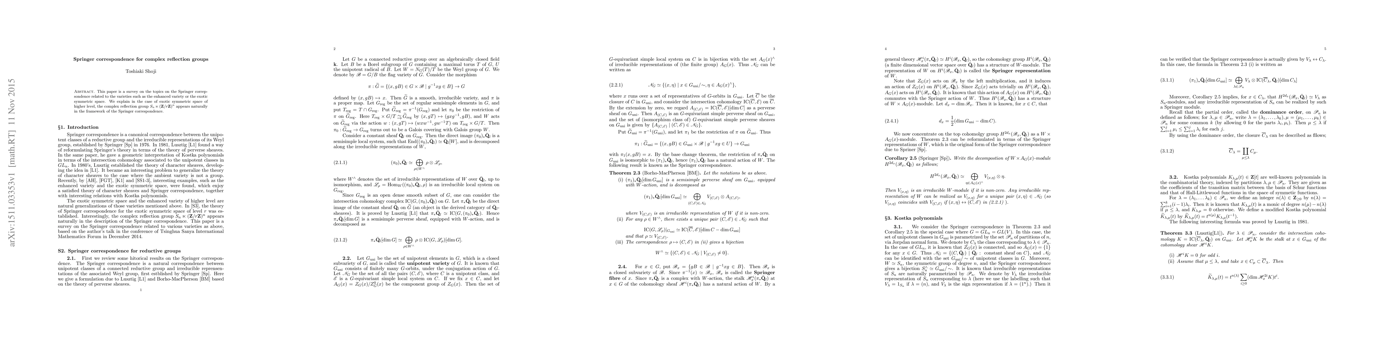 This paper explores the Springer correspondence for complex reflection groups, highlighting its relevance to exotic symmetric spaces of higher levels. It reveals how the complex reflection group $S_n imes (Z/rZ)^n$ naturally appears in this context.
