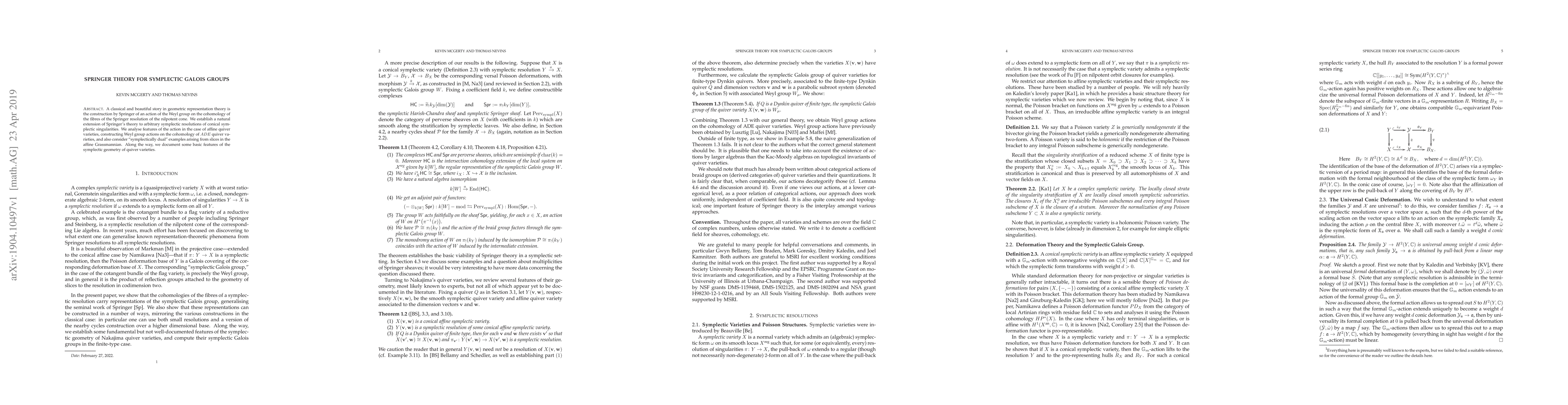 This paper extends Springer's theory to symplectic Galois groups, establishing a Weyl group action on the cohomology of arbitrary symplectic resolutions of conical singularities. It applies this framework to affine quiver varieties and symplectic dual examples from the affine Grassmannian.