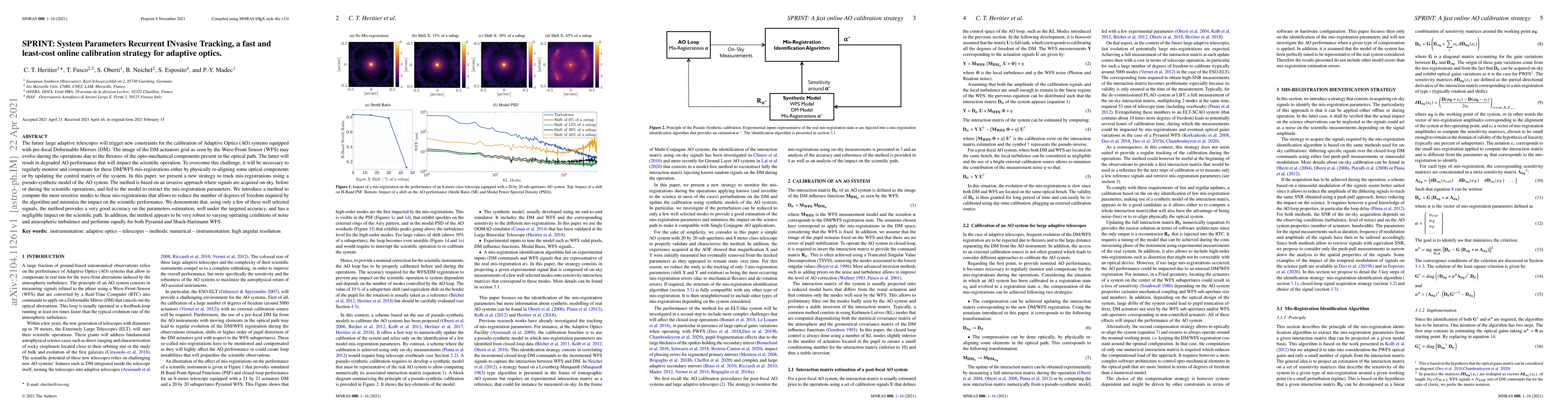 The SPRINT strategy presents a fast, least-cost online calibration method for adaptive optics systems using invasive tracking of mis-registrations between deformable mirrors and wave-front sensors. This method efficiently estimates mis-registration parameters with minimal impact on scientific operations, demonstrating robustness under varying noise and atmospheric conditions.