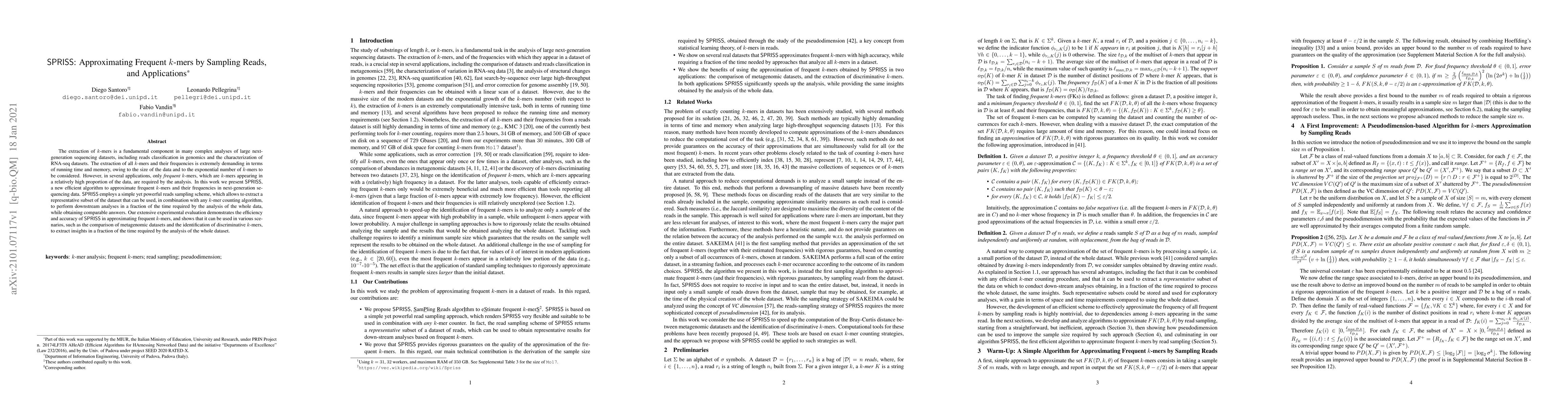 SPRISS is an efficient algorithm for approximating frequent $k$-mers in large next-generation sequencing datasets by sampling reads, significantly reducing analysis time and memory usage. Experimental results show its effectiveness in various applications, including metagenomic comparisons and discriminative $k$-mer identification.