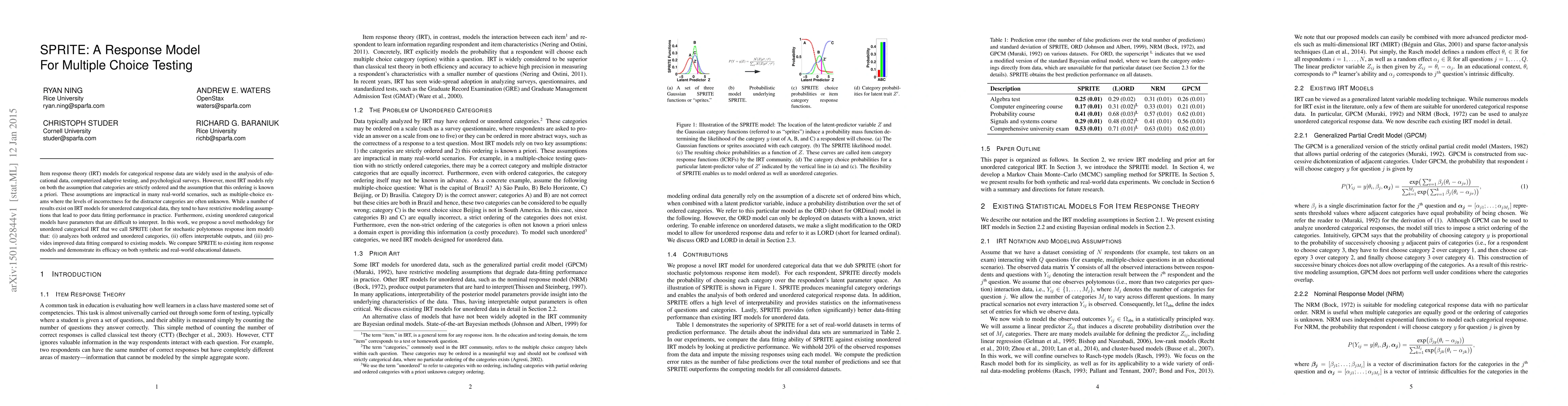 SPRITE is a novel IRT model for unordered categorical data, offering improved fitting and interpretability over existing models, and is shown to perform well on both synthetic and real educational datasets. It addresses the limitations of traditional IRT models by analyzing both ordered and unordered categories.