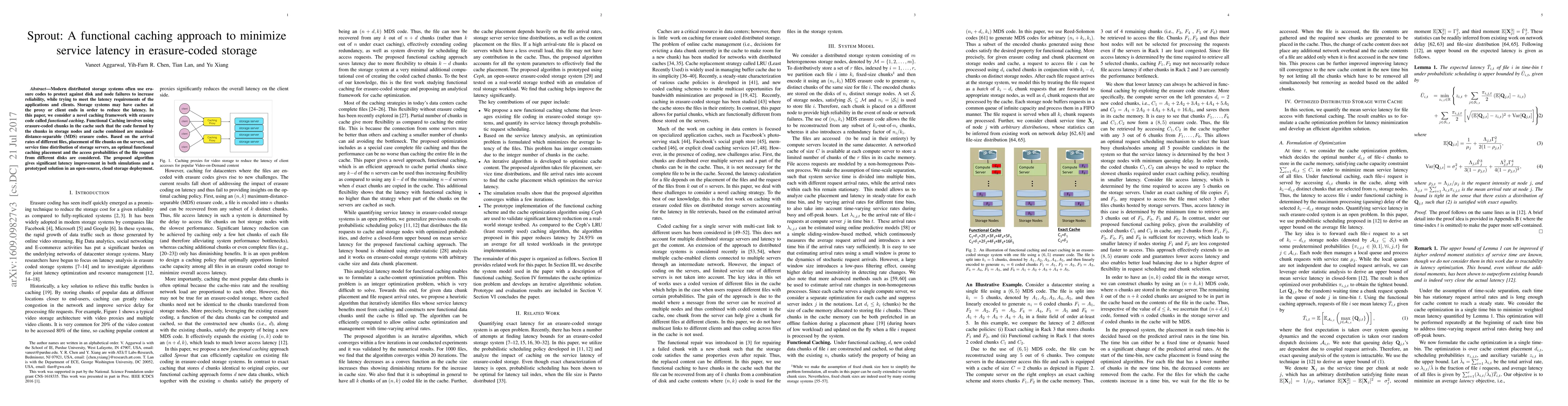 This paper introduces functional caching, a novel approach to minimize service latency in erasure-coded storage systems. The method uses erasure-coded chunks in the cache to form maximal-distance-separable codes, optimizing placement and access probabilities to achieve significant latency improvements in both simulations and a prototype deployment.