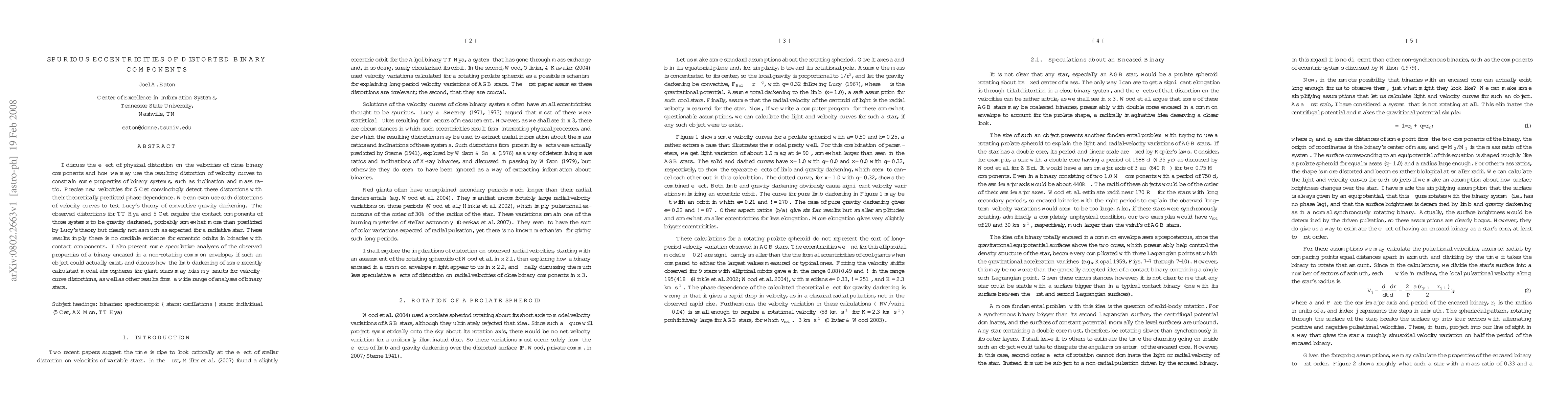 I discuss the effect of physical distortion on the velocities of close binary components and how we may use the resulting distortion of velocity curves to constrain some properties of binary systems, such as inclination and mass ratio. Precise new velocities for 5 Cet convincingly detect these distortions with their theoretically predicted phase dependence. We can even use such distortions of velocity curves to test Lucy's theory of convective gravity darkening. The observed distortions for TT Hya and 5 Cet require the contact components of those systems to be gravity darkened, probably somewhat more than predicted by Lucy's theory but clearly not as much as expected for a radiative star. These results imply there is no credible evidence for eccentric orbits in binaries with contact components. I also present some speculative analyses of the observed properties of a binary encased in a non-rotating common envelope, if such an object could actually exist, and discuss how the limb darkening of some recently calculated model atmospheres for giant stars may bias my resuts for velocity-curve distortions, as well as other results from a wide range of analyses of binary stars.