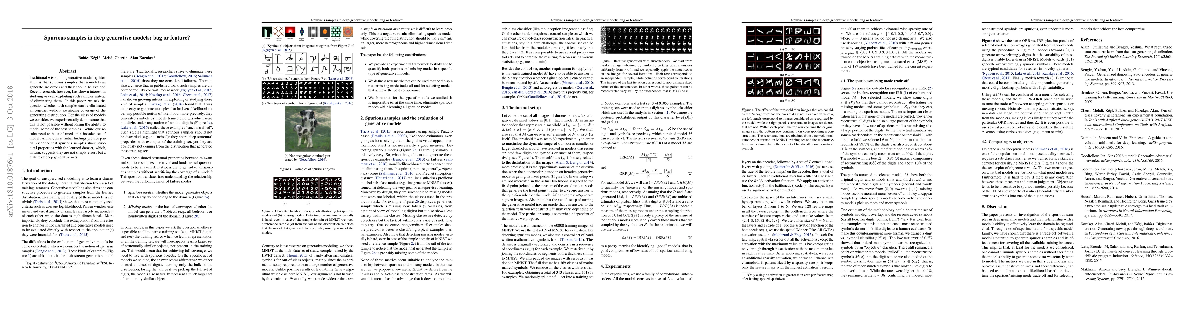 Traditional wisdom in generative modeling literature is that spurious samples that a model can generate are errors and they should be avoided. Recent research, however, has shown interest in studying or even exploiting such samples instead of eliminating them. In this paper, we ask the question whether such samples can be eliminated all together without sacrificing coverage of the generating distribution. For the class of models we consider, we experimentally demonstrate that this is not possible without losing the ability to model some of the test samples. While our results need to be confirmed on a broader set of model families, these initial findings provide partial evidence that spurious samples share structural properties with the learned dataset, which, in turn, suggests they are not simply errors but a feature of deep generative nets.