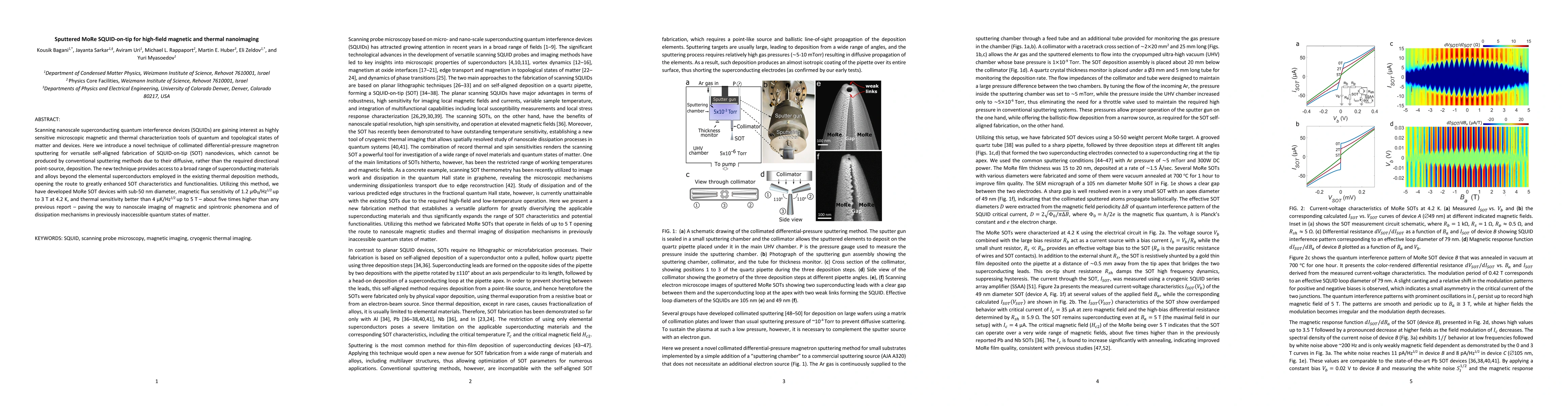 This paper introduces a novel collimated differential-pressure magnetron sputtering technique for fabricating SQUID-on-tip nanodevices, achieving significantly enhanced magnetic and thermal sensitivity. The developed MoRe SQUID-on-tip devices demonstrate superior performance, enabling nanoscale imaging of magnetic and spintronic phenomena in quantum states.
