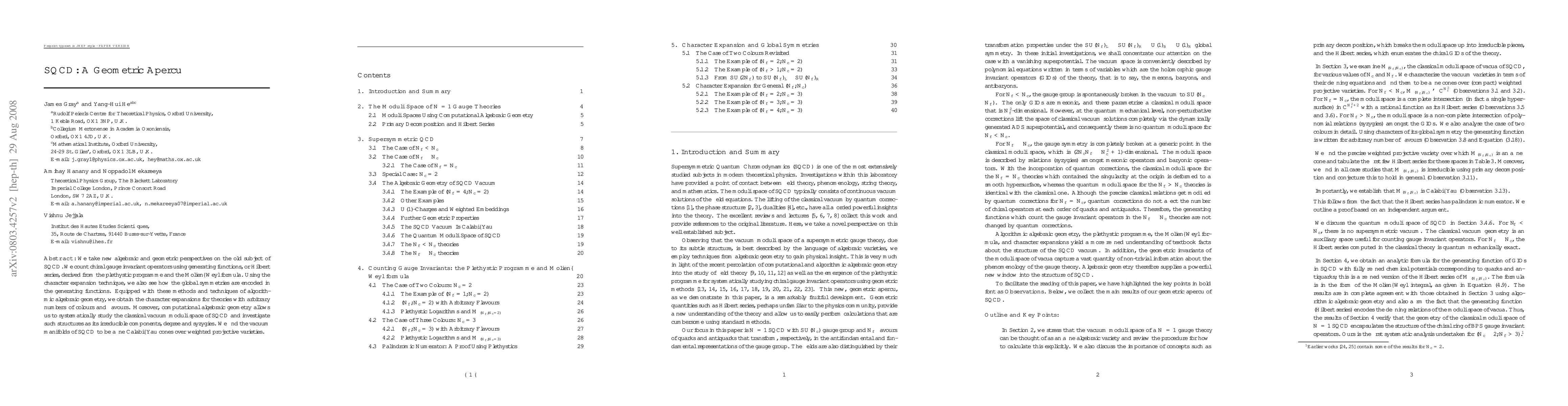 We take new algebraic and geometric perspectives on the old subject of SQCD. We count chiral gauge invariant operators using generating functions, or Hilbert series, derived from the plethystic programme and the Molien-Weyl formula. Using the character expansion technique, we also see how the global symmetries are encoded in the generating functions. Equipped with these methods and techniques of algorithmic algebraic geometry, we obtain the character expansions for theories with arbitrary numbers of colours and flavours. Moreover, computational algebraic geometry allows us to systematically study the classical vacuum moduli space of SQCD and investigate such structures as its irreducible components, degree and syzygies. We find the vacuum manifolds of SQCD to be affine Calabi-Yau cones over weighted projective varieties.
