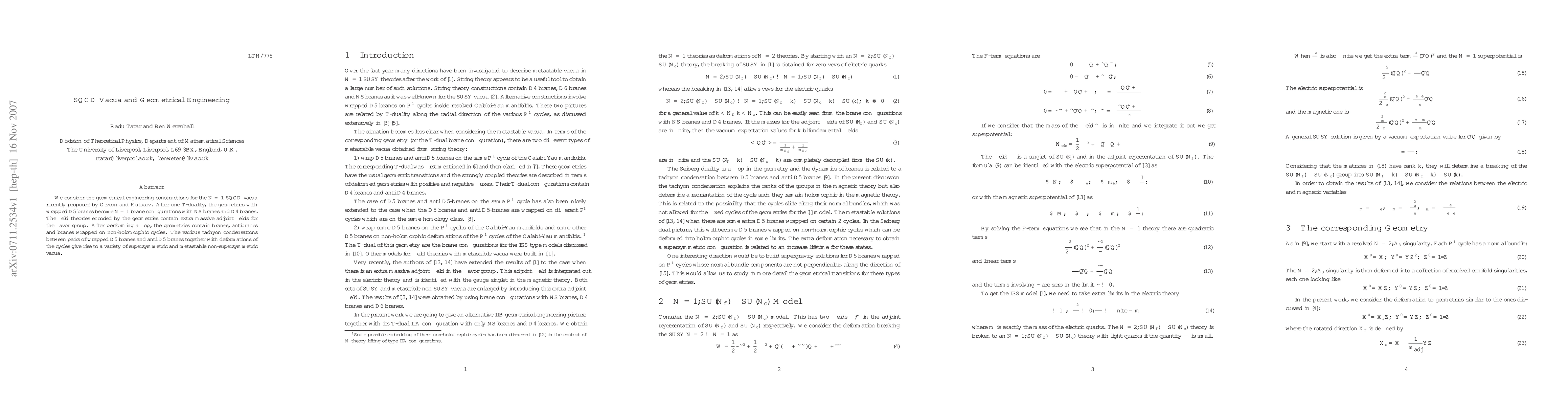 This paper investigates geometrical engineering techniques applied to N=1 SQCD vacua, proposing that T-duality transforms wrapped D5 branes into N=1 brane configurations involving NS and D4 branes, leading to the emergence of massive adjoint fields. Through flop transformations, the study explores brane-antibrane dynamics and tachyon condensations to generate a spectrum of supersymmetric and metastable non-supersymmetric vacua.