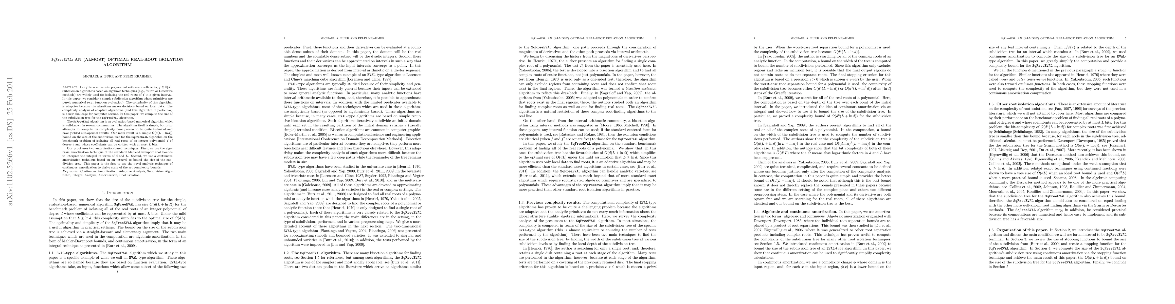 This paper introduces the SqFreeEVAL algorithm, a simple numerical method for isolating real roots of polynomials, and provides an optimal complexity bound of O(d(L+ln d)) for its subdivision tree size. The authors employ novel amortization techniques, including algebraic and continuous amortization, to achieve this result.