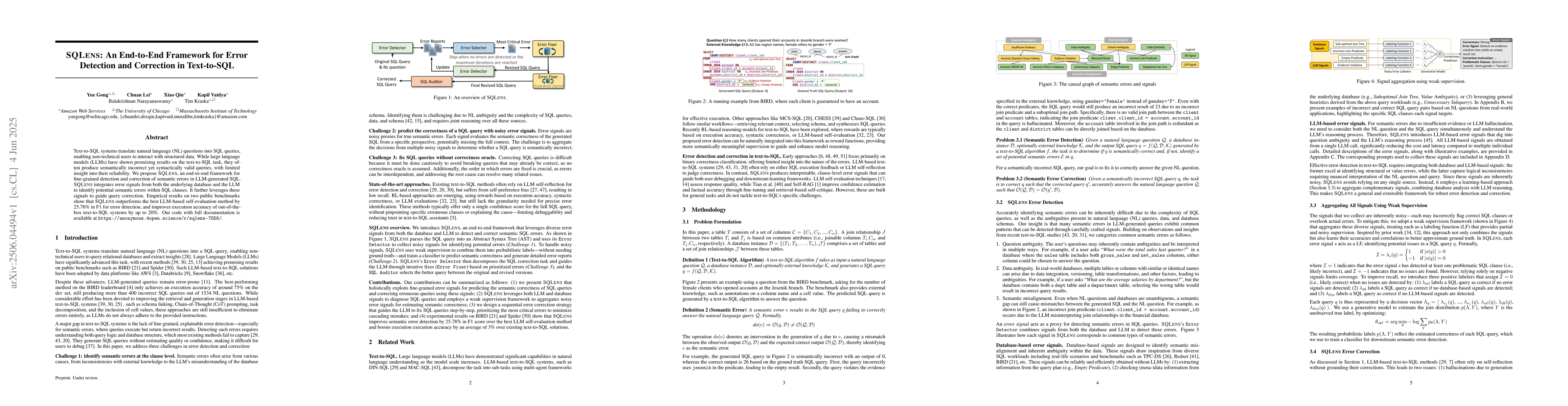 SQLens provides a novel approach to fine-grained error detection and correction in text-to-SQL systems by leveraging both database and LLM error signals.