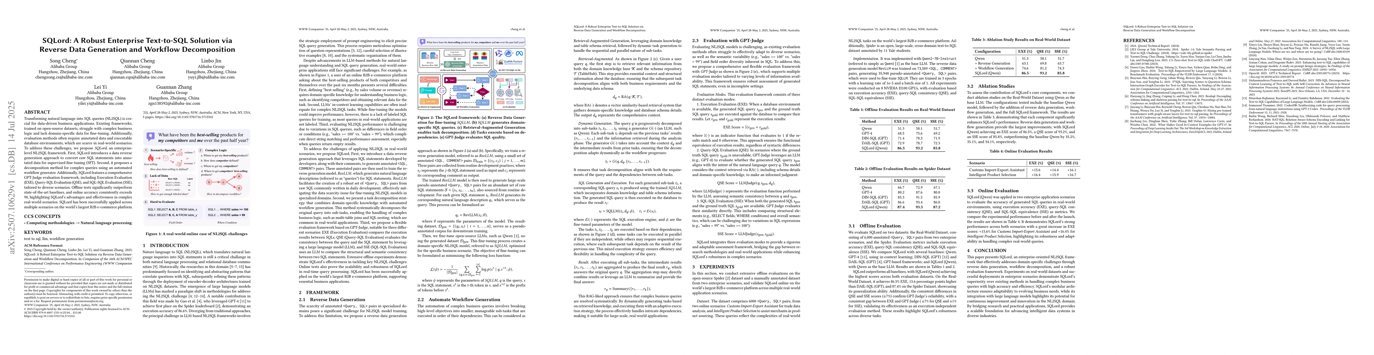 Transforming natural language into SQL queries (NL2SQL) is crucial for data-driven business applications. Existing frameworks, trained on open-source datasets, struggle with complex business logic and lack domain-specific data for fine-tuning. Additionally, evaluation methods often require annotated data and executable database environments, which are scarce in real-world scenarios. To address these challenges, we propose SQLord, an enterprise-level NL2SQL framework. First, SQLord introduces a data reverse generation approach to convert raw SQL statements into annotated data for supervised fine-tuning (SFT). Second, it proposes a decomposition method for complex queries using an automated workflow generator. Additionally, SQLord features a comprehensive GPT-Judge evaluation framework, including Execution Evaluation (EXE), Query-SQL Evaluation (QSE), and SQL-SQL Evaluation (SSE), tailored to diverse scenarios. Offline tests significantly outperform state of the art baselines, and online accuracy consistently exceeds 90, highlighting SQLord's advantages and effectiveness in complex real world scenarios. SQLord has been successfully applied across multiple scenarios on the world's largest B2B e-commerce platform.