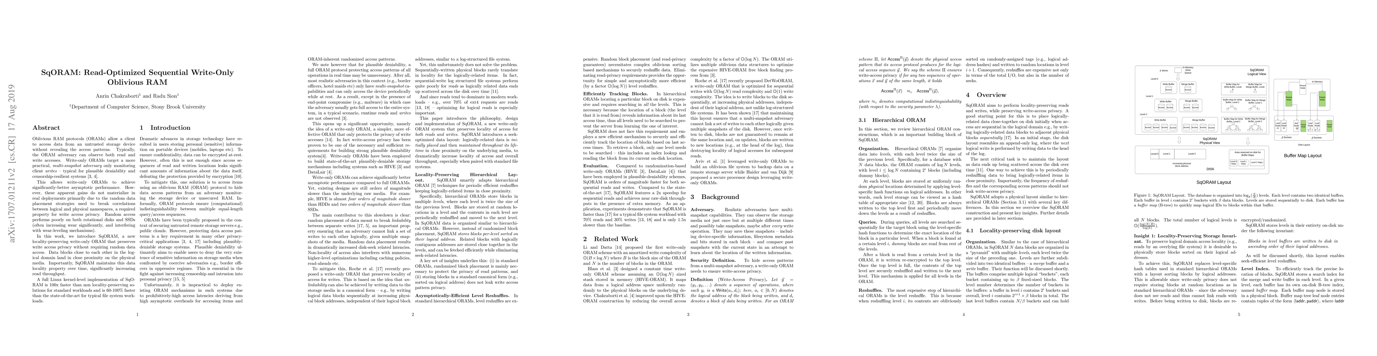 SqORAM introduces a new locality-preserving write-only Oblivious RAM protocol that maintains data locality to enhance read throughput without compromising write access privacy. This approach significantly outperforms existing solutions in real-world deployments, achieving up to 100x faster read speeds for standard workloads.