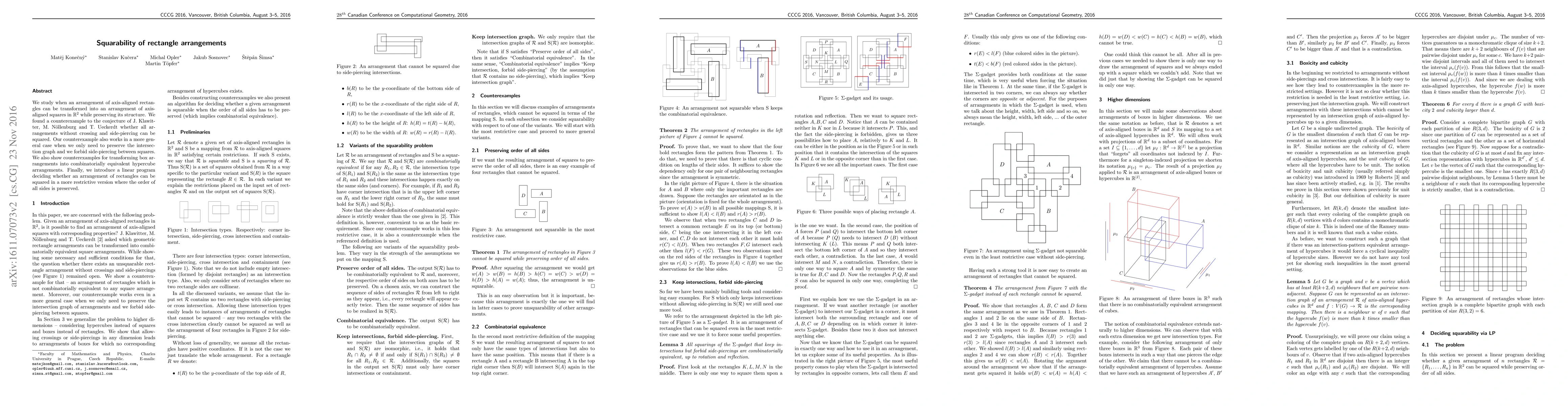 We study when an arrangement of axis-aligned rectangles can be transformed into an arrangement of axis-aligned squares in $\mathbb{R}^2$ while preserving its structure. We found a counterexample to the conjecture of J. Klawitter, M. N\"ollenburg and T. Ueckerdt whether all arrangements without crossing and side-piercing can be squared. Our counterexample also works in a more general case when we only need to preserve the intersection graph and we forbid side-piercing between squares. We also show counterexamples for transforming box arrangements into combinatorially equivalent hypercube arrangements. Finally, we introduce a linear program deciding whether an arrangement of rectangles can be squared in a more restrictive version where the order of all sides is preserved.
