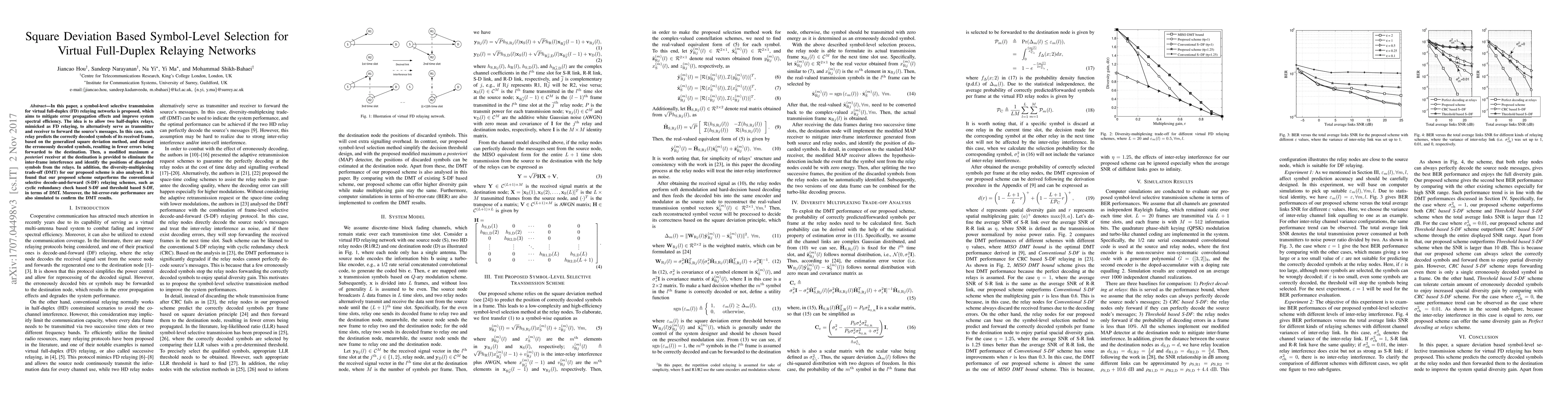 In this paper, a symbol-level selective transmission for virtual full-duplex (FD) relaying networks is proposed, which aims to mitigate error propagation effects and improve system spectral efficiency. The idea is to allow two half-duplex relays, mimicked as FD relaying, to alternatively serve as transmitter and receiver to forward the source's messages. In this case, each relay predicts the correctly decoded symbols of its received frame, based on the generalized square deviation method, and discard the erroneously decoded symbols, resulting in fewer errors being forwarded to the destination. Then, a modified maximum \textit{a posteriori} receiver at the destination is provided to eliminate the inter-frame interference and identify the positions of discarded symbols from the relays. In addition, the diversity-multiplexing trade-off (DMT) for our proposed scheme is also analysed. It is found that our proposed scheme outperforms the conventional selective decode-and-forward (S-DF) relaying schemes, such as cyclic redundancy check based S-DF and threshold based S-DF, in terms of DMT. Moreover, the bit-error-rate performance are also simulated to confirm the DMT results.