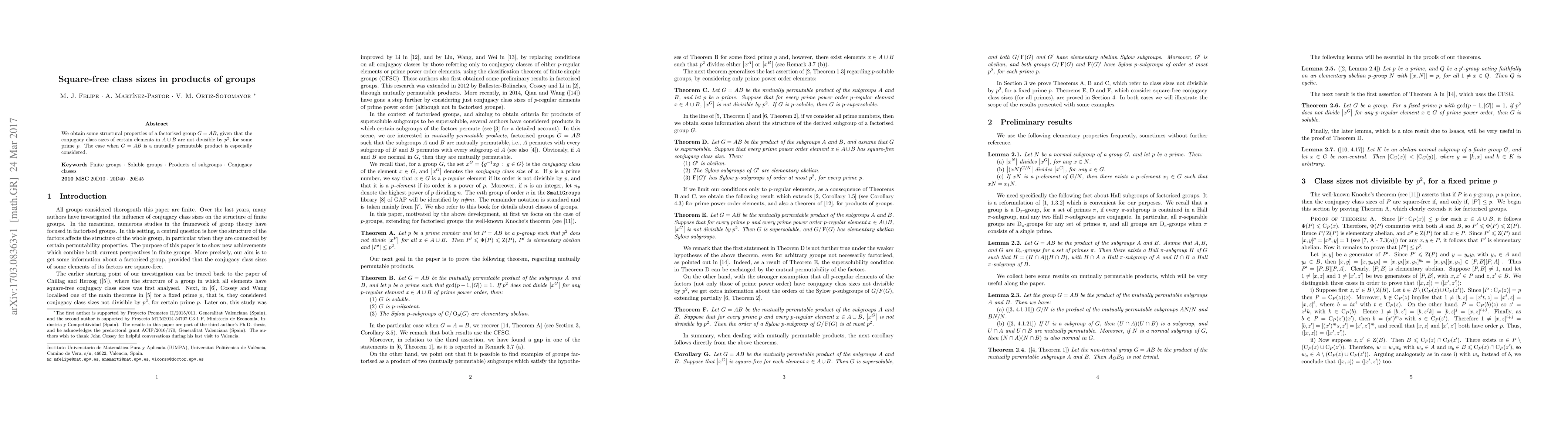 We obtain some structural properties of a factorised group $G = AB$, given that the conjugacy class sizes of certain elements in $A\cup B$ are not divisible by $p^2$, for some prime $p$. The case when $G = AB$ is a mutually permutable product is especially considered.