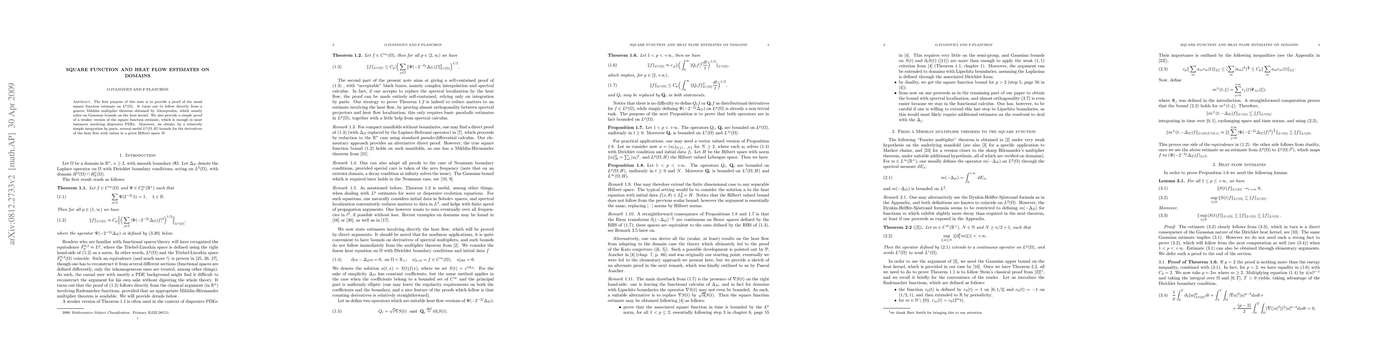 The first purpose of this note is to provide a proof of the usual square function estimate on Lp (?). It turns out to follow directly from a generic Mikhlin multiplier theorem obtained by Alexopoulos, which mostly relies on Gaussian bounds on the heat kernel. We also provide a simple proof of a weaker version of the square function estimate, which is enough in most instances involving dispersive PDEs. Moreover, we obtain, by a relatively simple integration by parts, several useful Lp (?; H) bounds for the derivatives of the heat ?ow with values in a given Hilbert space H.