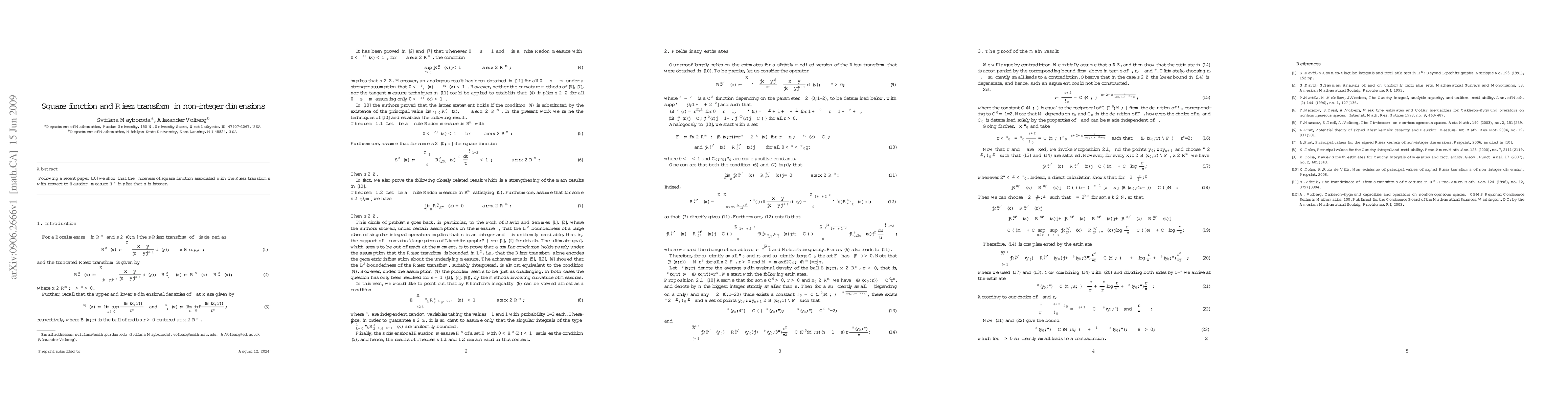 This research demonstrates that the finiteness of the square function related to Riesz transforms, when considered with respect to Hausdorff measure H^s, necessitates that 's' is an integer. The study builds on previous work by Tolsa and Ruiz de Villa.