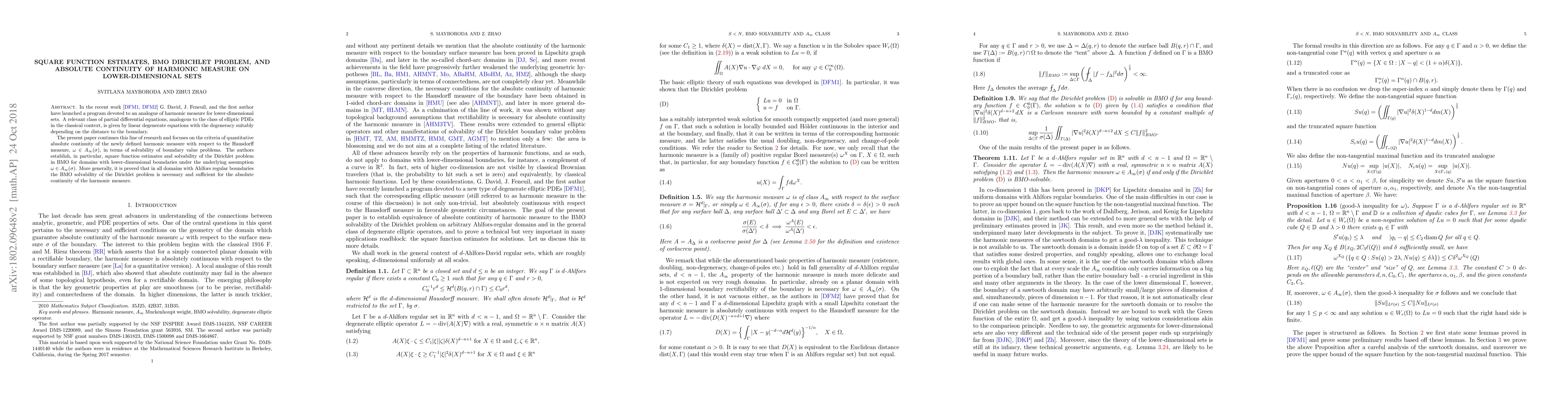 This paper extends research on harmonic measure analogues for lower-dimensional sets, establishing square function estimates and the solvability of the Dirichlet problem in BMO. It proves that BMO solvability of the Dirichlet problem is necessary and sufficient for the absolute continuity of harmonic measure in domains with Ahlfors regular boundaries.
