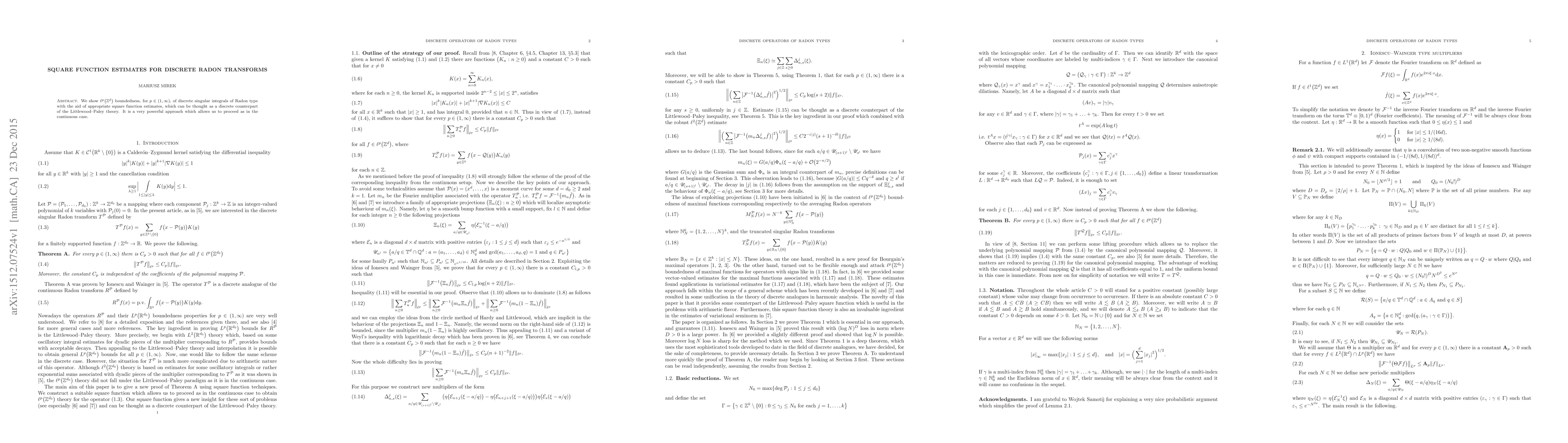 This paper demonstrates $\ell^p\big(\mathbb Z^d\big)$ boundedness for $p\in(1, \infty)$ of discrete singular integrals of Radon type using square function estimates, establishing a discrete analogue of the Littlewood-Paley theory. This method effectively mirrors the continuous case.