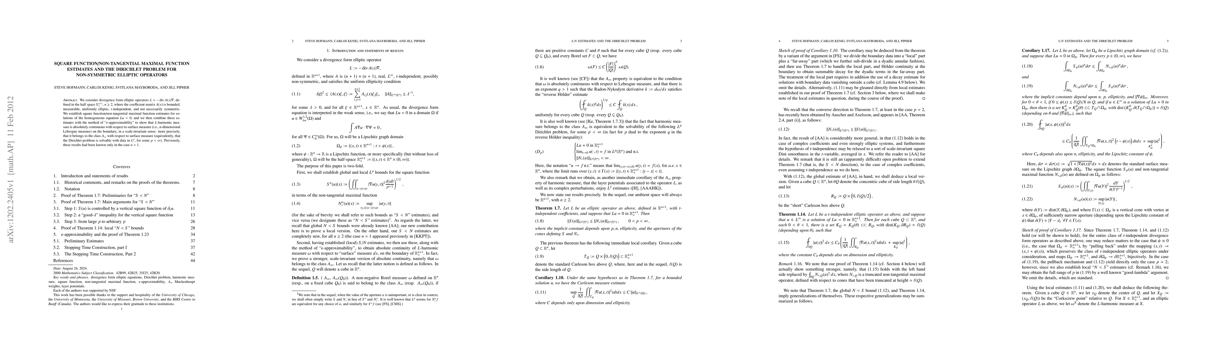 This paper establishes square function/non-tangential maximal function estimates for solutions of non-symmetric elliptic operators in the half space, and uses these to show that L-harmonic measure is absolutely continuous on the boundary, solving the Dirichlet problem for such operators in dimensions n ≥ 2.
