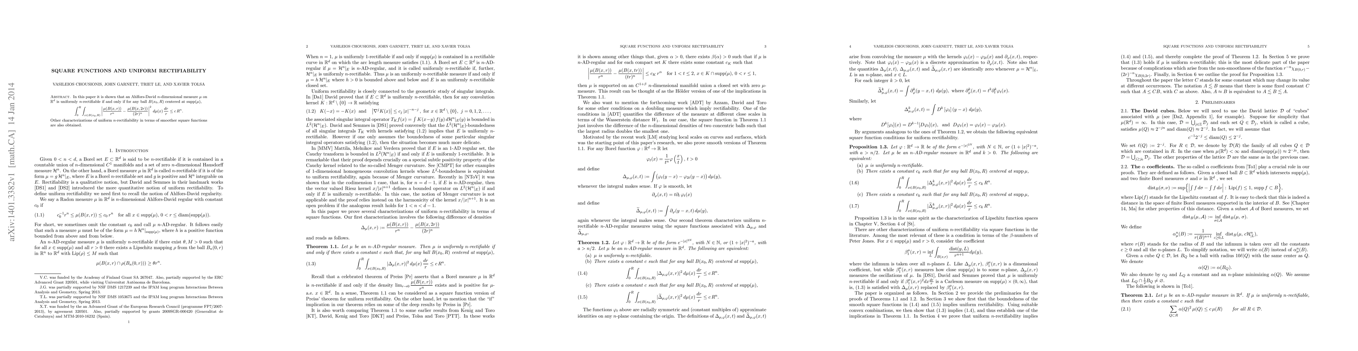 A new characterization of uniform $n$-rectifiability in measure theory is established using square functions, providing a key tool for understanding the behavior of Ahlfors-David measures.