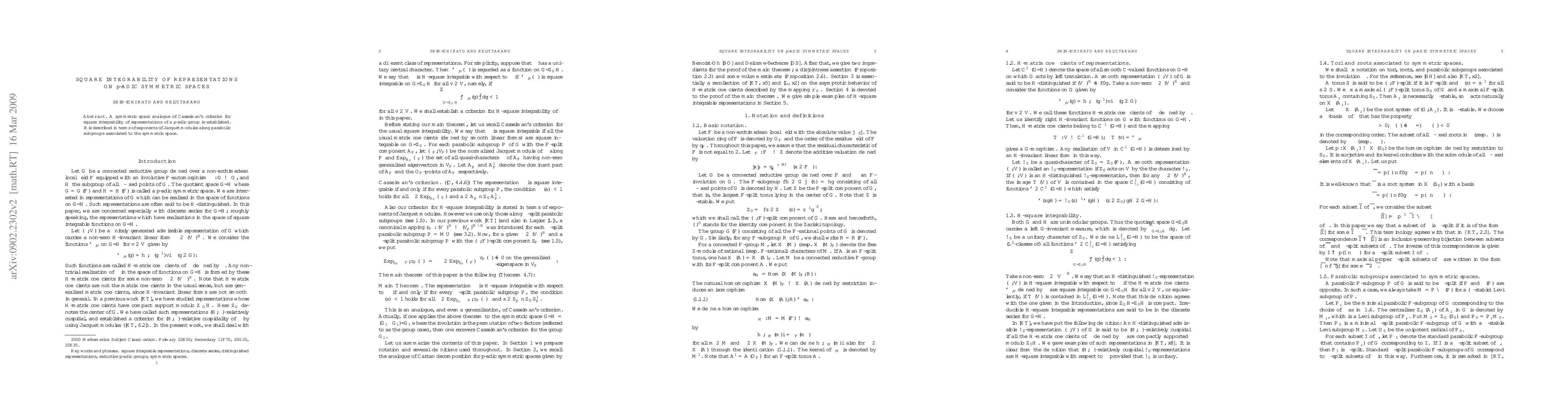 Summary: This paper establishes a symmetric space analogue of Casselman's criterion for square integrability of p-adic group representations, characterized by the exponents of Jacquet modules along parabolic subgroups.