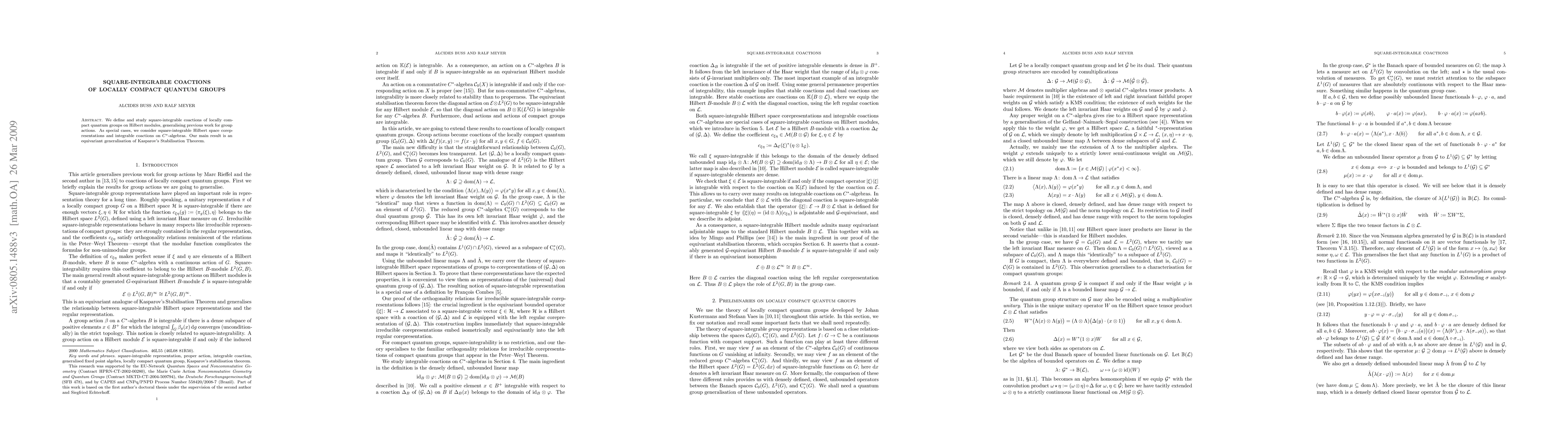 This paper defines and studies square-integrable coactions of locally compact quantum groups on Hilbert modules, generalizing previous group action work. The authors derive an equivariant version of Kasparov's Stabilisation Theorem as a key result.