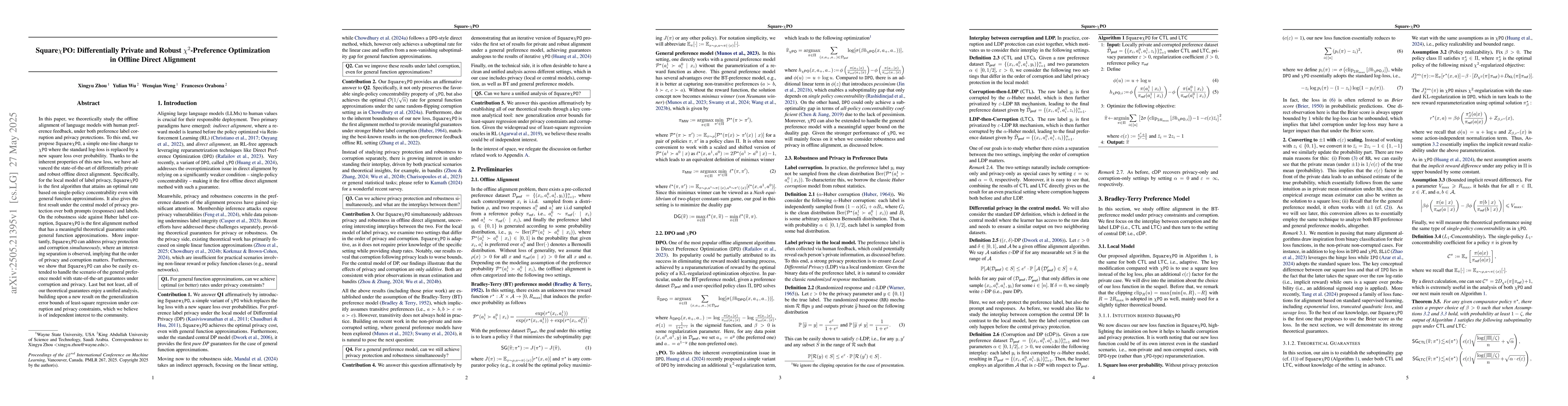 Researchers developed Square$ heta$PO, a new method for offline direct alignment of language models that balances privacy and robustness with improved performance; it achieves optimal rates under different conditions.