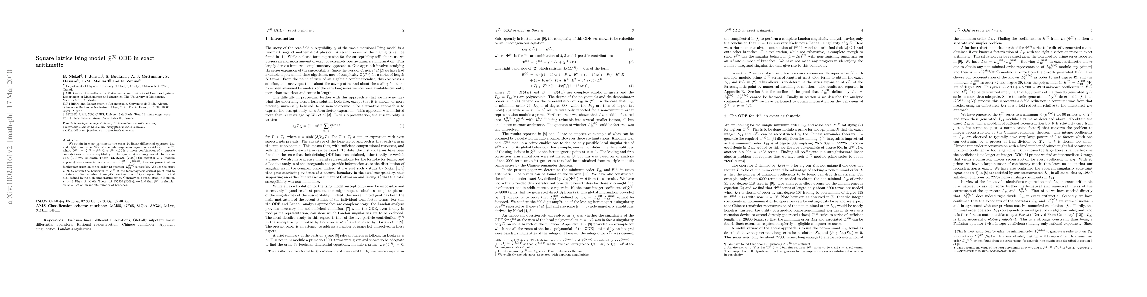 We obtain in exact arithmetic the order 24 linear differential operator $L_{24}$ and right hand side $E^{(5)}$ of the inhomogeneous equation$L_{24}(\Phi^{(5)}) = E^{(5)}$, where $\Phi^{(5)} =\tilde{\chi}^{(5)}-\tilde{\chi}^{(3)}/2+\tilde{\chi}^{(1)}/120$ is a linear combination of $n$-particle contributions to the susceptibility of the square lattice Ising model. In Bostan, et al. (J. Phys. A: Math. Theor. {\bf 42}, 275209 (2009)) the operator $L_{24}$ (modulo a prime) was shown to factorize into $L_{12}^{(\rm left)} \cdot L_{12}^{(\rm right)}$; here we prove that no further factorization of the order 12 operator $L_{12}^{(\rm left)}$ is possible. We use the exact ODE to obtain the behaviour of $\tilde{\chi}^{(5)}$ at the ferromagnetic critical point and to obtain a limited number of analytic continuations of $\tilde{\chi}^{(5)}$ beyond the principal disk defined by its high temperature series. Contrary to a speculation in Boukraa, et al (J. Phys. A: Math. Theor. {\bf 41} 455202 (2008)), we find that $\tilde{\chi}^{(5)}$ is singular at $w=1/2$ on an infinite number of branches.