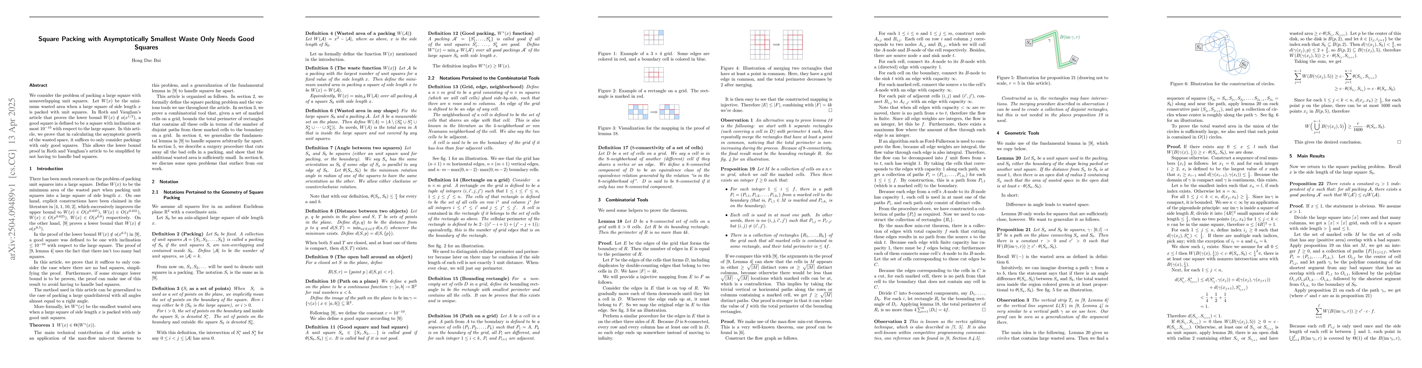 Researchers prove that only considering good squares in square packing is sufficient to establish a lower bound for wasted area growth, simplifying the proof process.