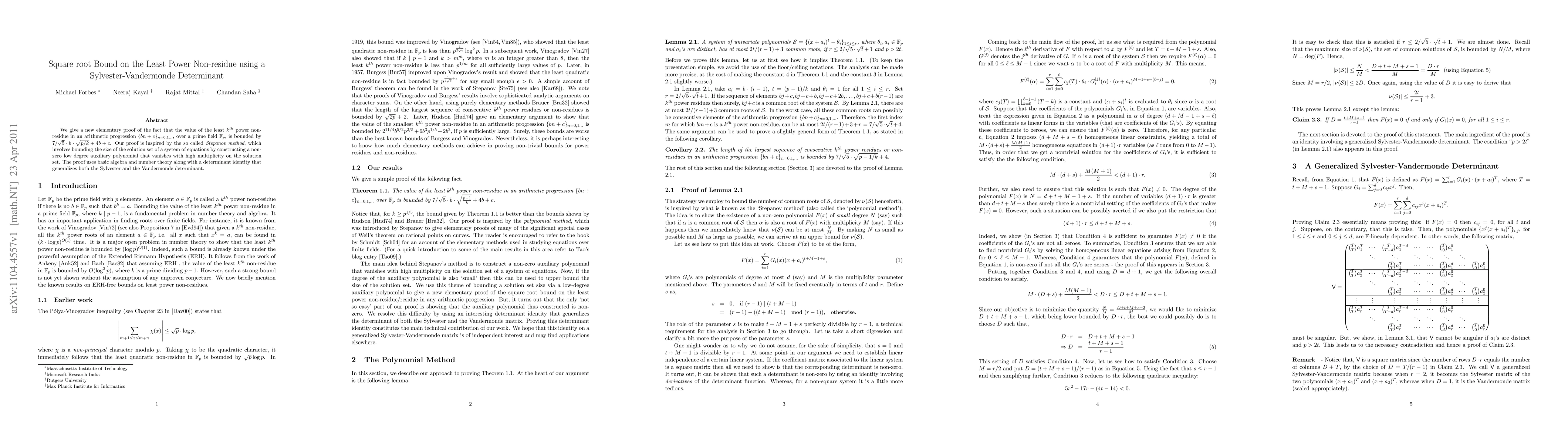 This paper presents a new elementary proof for bounding the least $k^{th}$ power non-residue in an arithmetic progression over a prime field $\F_p$, using a Sylvester-Vandermonde determinant. The bound is $7/\sqrt{5} \cdot b \cdot \sqrt{p/k} + 4b + c$, derived via the Stepanov method and basic algebra.