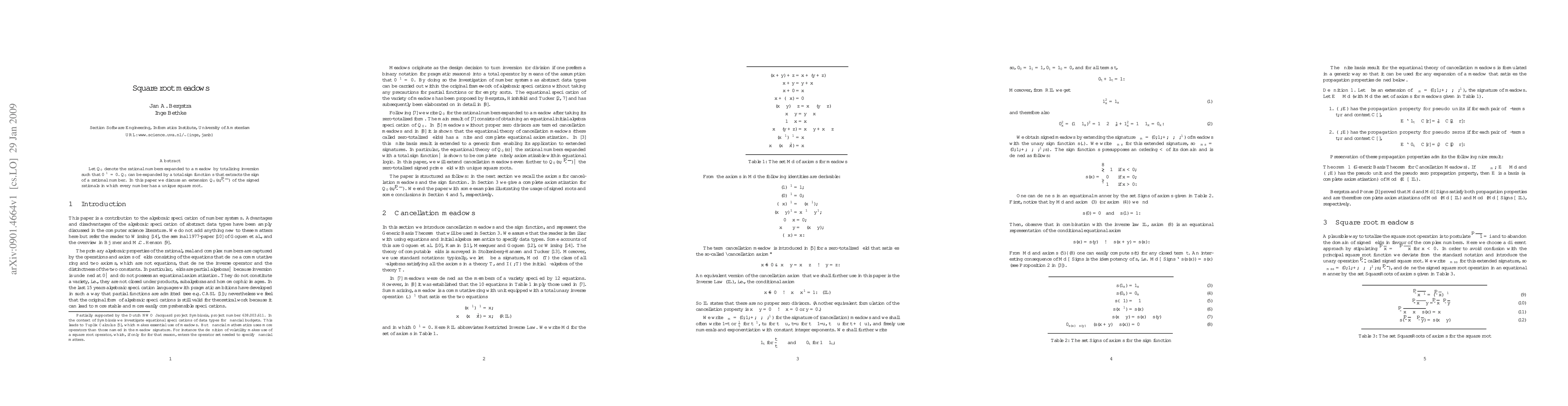 Let Q_0 denote the rational numbers expanded to a meadow by totalizing inversion such that 0^{-1}=0. Q_0 can be expanded by a total sign function s that extracts the sign of a rational number. In this paper we discuss an extension Q_0(s ,\sqrt) of the signed rationals in which every number has a unique square root.