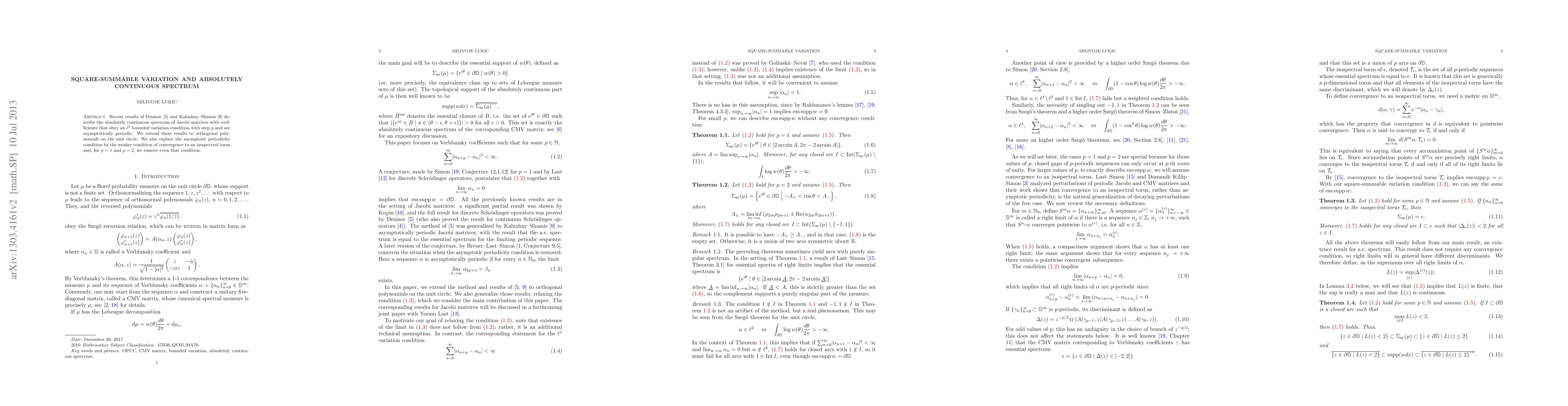 Recent results of Denisov and Kaluzhny-Shamis describe the absolutely continuous spectrum of Jacobi matrices with coefficients that obey an l^2 bounded variation condition with step p and are asymptotically periodic. We extend these results to orthogonal polynomials on the unit circle. We also replace the asymptotic periodicity condition by the weaker condition of convergence to an isospectral torus and, for p=1 and p=2, we remove even that condition.