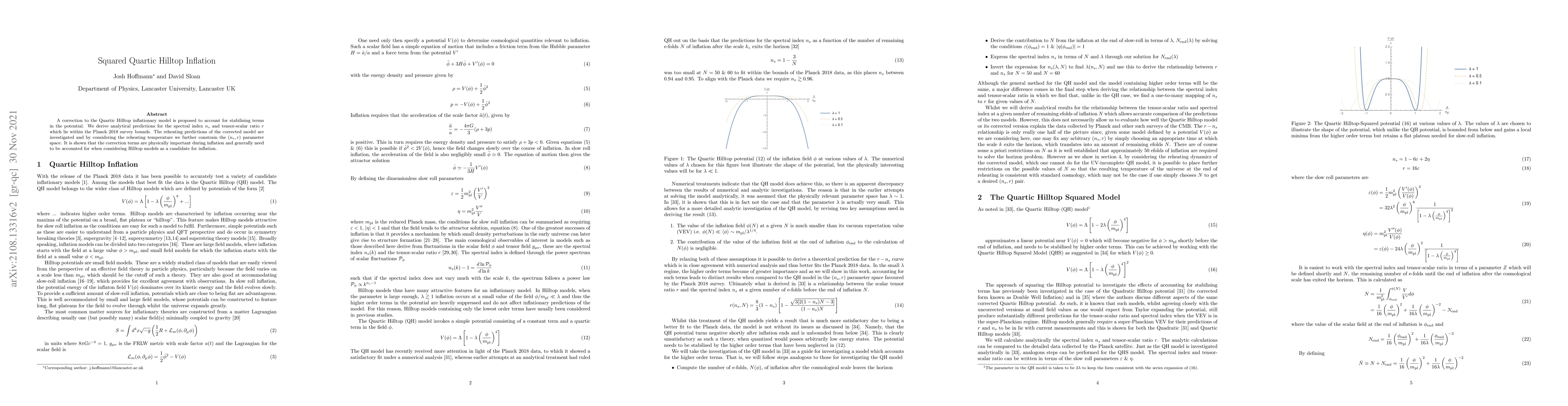 The research proposes a correction to the Quartic Hilltop inflationary model, incorporating stabilizing terms in the potential, and derives analytical predictions for the spectral index ns and tensor-scalar ratio r within Planck 2018 bounds.