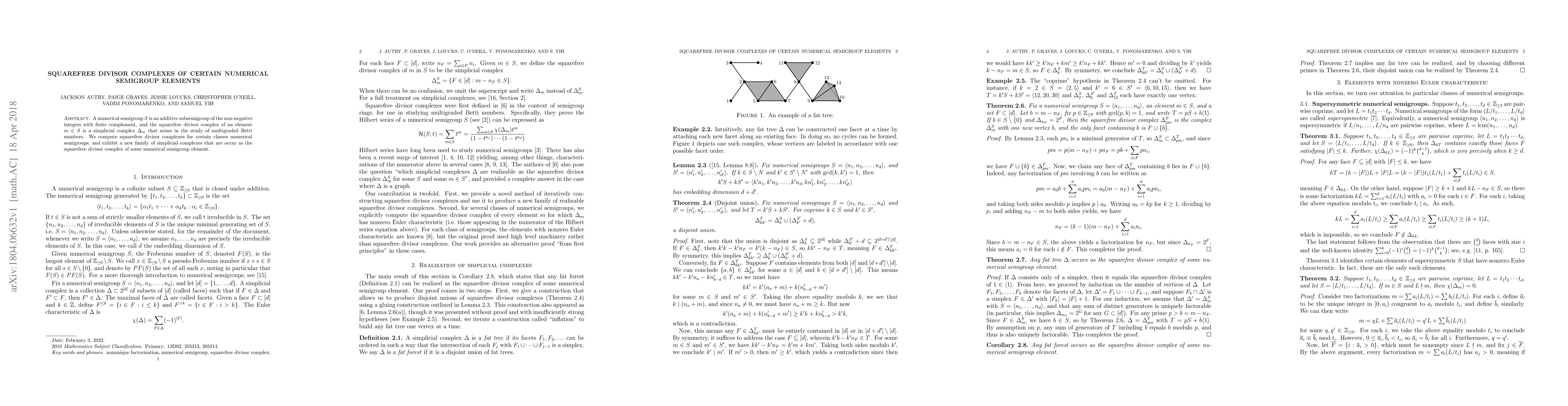 Researchers compute squarefree divisor complexes for certain numerical semigroups, discovering a new family of simplicial complexes that arise from specific elements in these semigroups.