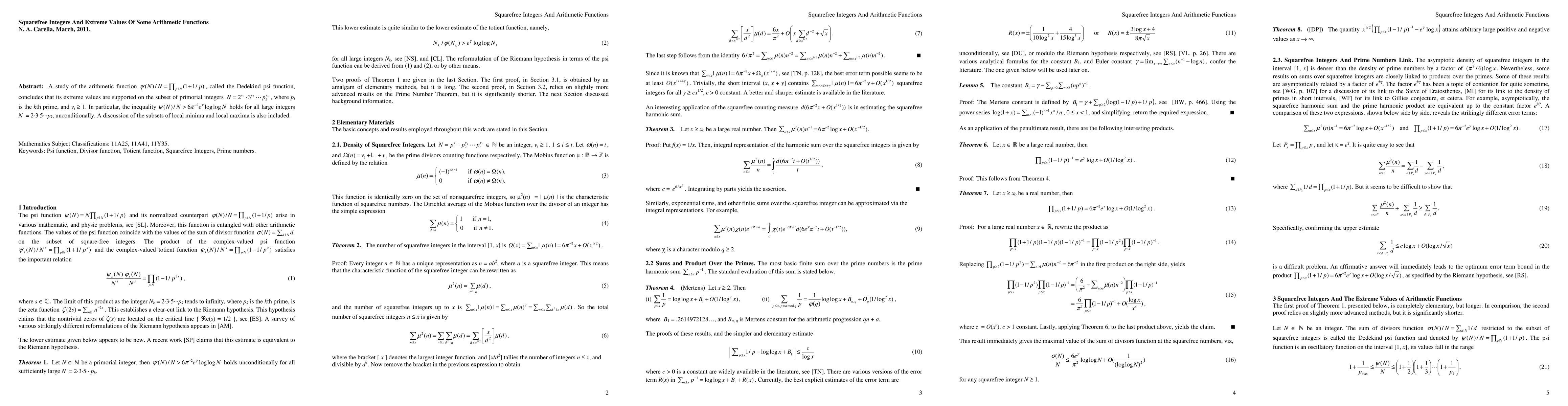 A study of the Dedekind psi function concludes that its extreme values are supported on the subset of primorial integers N_k = 2*3***p_k, where p_k is the kth prime. In particular, the inequality psi(N_k) > cloglogN_k, c > 0 constant, holds for all large primorial integers.