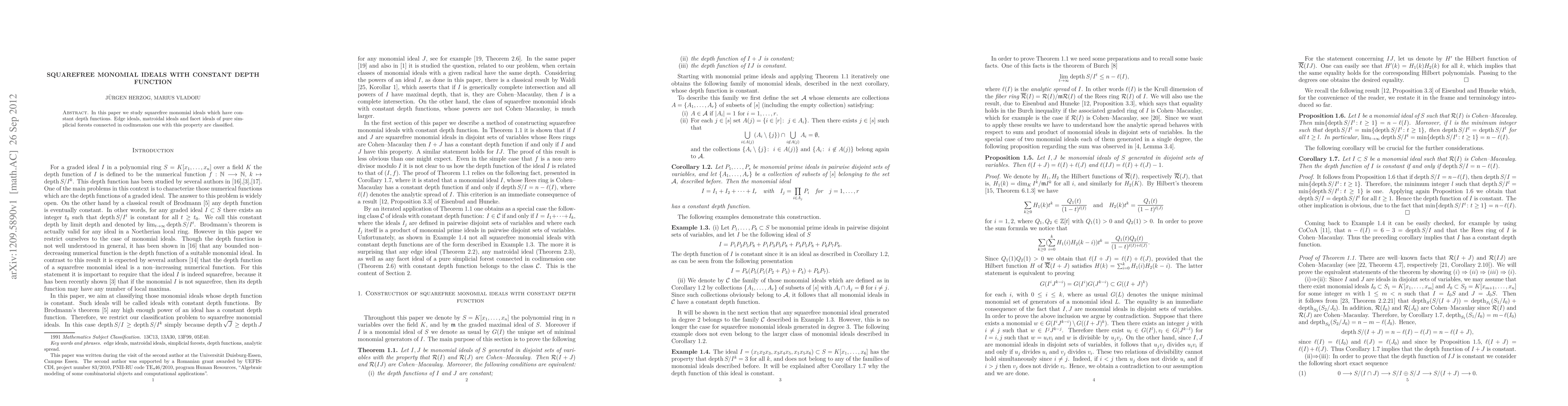 This paper classifies squarefree monomial ideals with constant depth functions, focusing on edge ideals, matroidal ideals, and facet ideals of pure simplicial forests that exhibit this property in codimension one. The study aims to understand the structural characteristics of these specific types of ideals.
