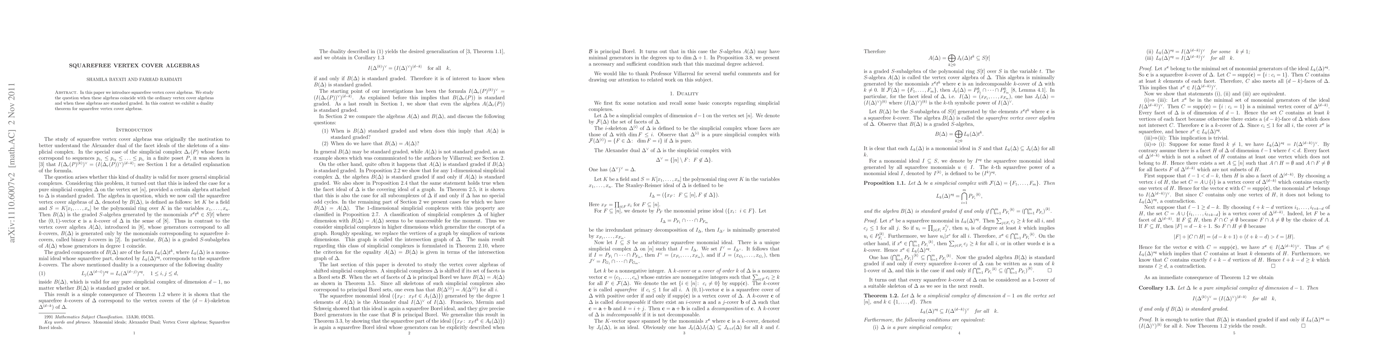 This paper introduces squarefree vertex cover algebras and investigates their equivalence with ordinary vertex cover algebras and their standard graded nature. It also presents a duality theorem for these specialized algebras.