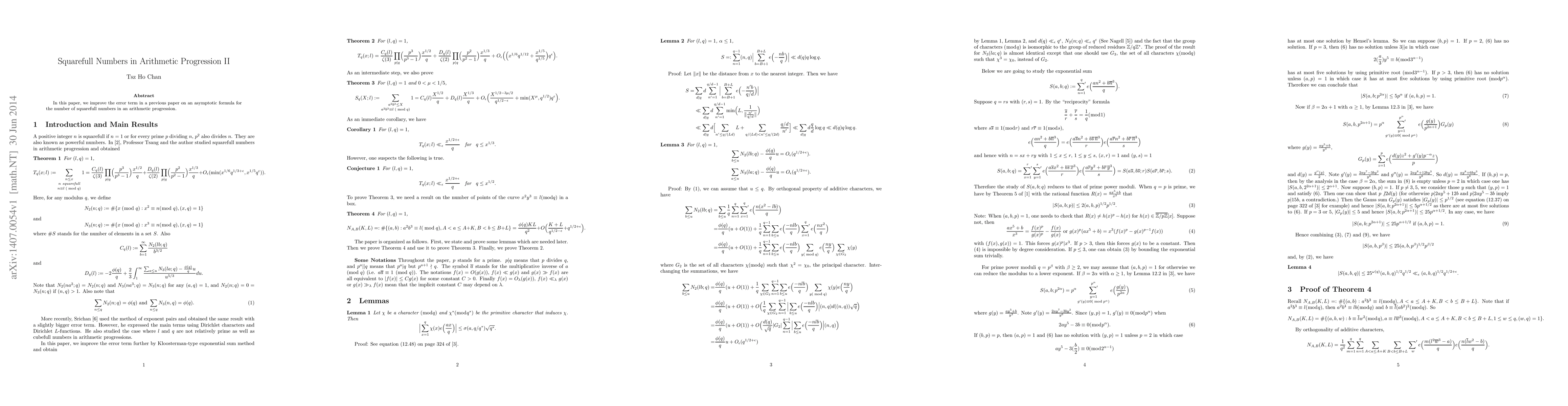 Summary: This paper refines the error term in an asymptotic formula for counting squarefull numbers within an arithmetic progression, building on previous research. The improvement enhances the precision of the formula.