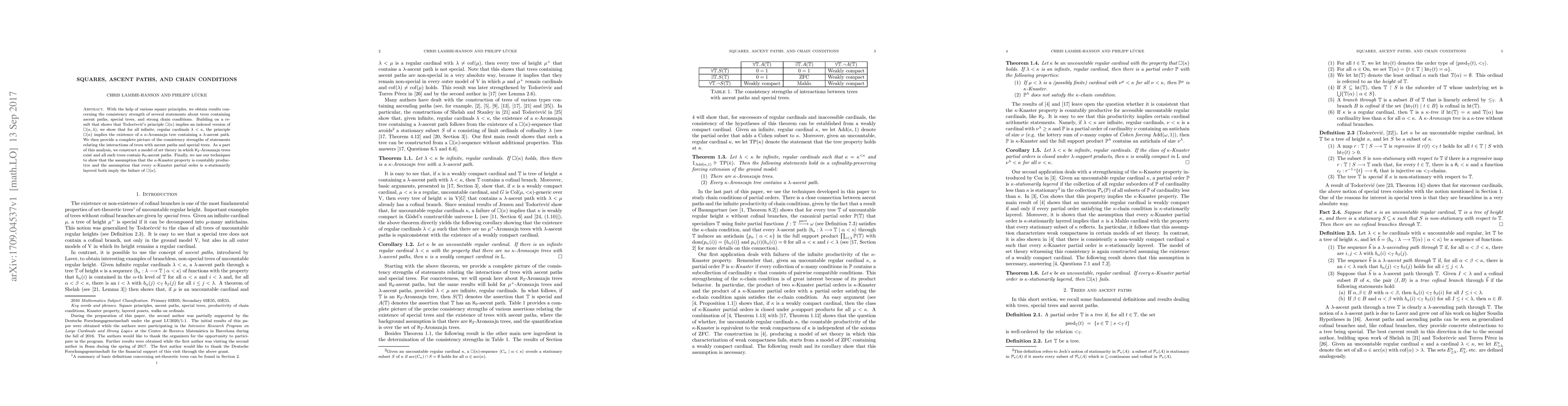 With the help of various square principles, we obtain results concerning the consistency strength of several statements about trees containing ascent paths, special trees, and strong chain conditions. Building on a result that shows that Todor\v{c}evi\'{c}'s principle $\square(\kappa)$ implies an indexed version of $\square(\kappa,\lambda)$, we show that for all infinite, regular cardinals $\lambda<\kappa$, the principle $\square(\kappa)$ implies the existence of a $\kappa$-Aronszajn tree containing a $\lambda$-ascent path. We then provide a complete picture of the consistency strengths of statements relating the interactions of trees with ascent paths and special trees. As a part of this analysis, we construct a model of set theory in which $\aleph_2$-Aronszajn trees exist and all such trees contain $\aleph_0$-ascent paths. Finally, we use our techniques to show that the assumption that the $\kappa$-Knaster property is countably productive and the assumption that every $\kappa$-Knaster partial order is $\kappa$-stationarily layered both imply the failure of $\square(\kappa)$.