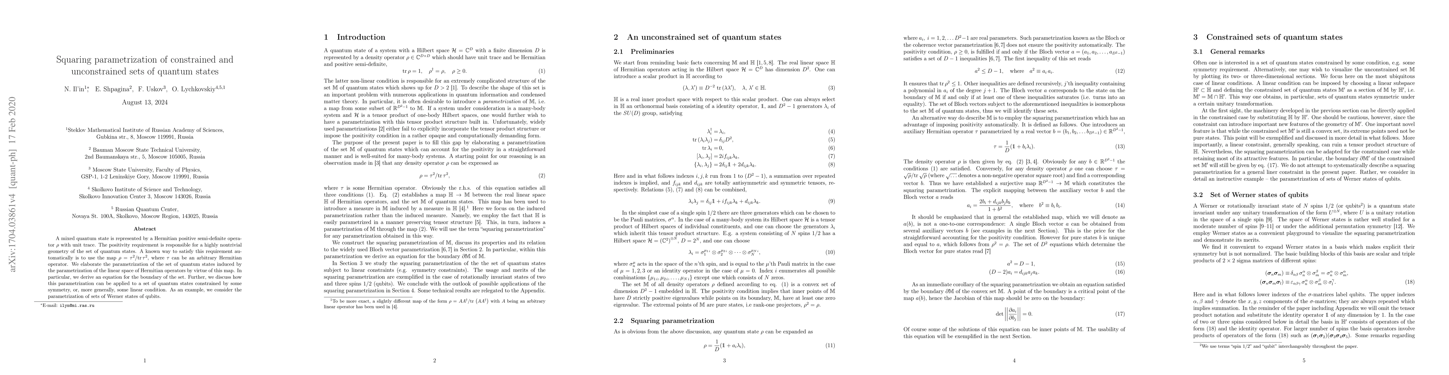 A mixed quantum state is represented by a Hermitian positive semi-definite operator $\rho$ with unit trace. The positivity requirement is responsible for a highly nontrivial geometry of the set of quantum states. A known way to satisfy this requirement automatically is to use the map $\rho=\tau^2 / \mathrm {tr} \, \tau^2$, where $\tau$ can be an arbitrary Hermitian operator. We elaborate a parametrization of the set of quantum states induced by the parametrization of the linear space of Hermitian operators by virtue of this map. In particular, we derive an equation for the boundary of the set. Further, we discuss how this parametrization can be applied to a set of quantum states constrained by some symmetry, or, more generally, some linear condition. As an example, we consider the parametrization of sets of Werner states of qubits.