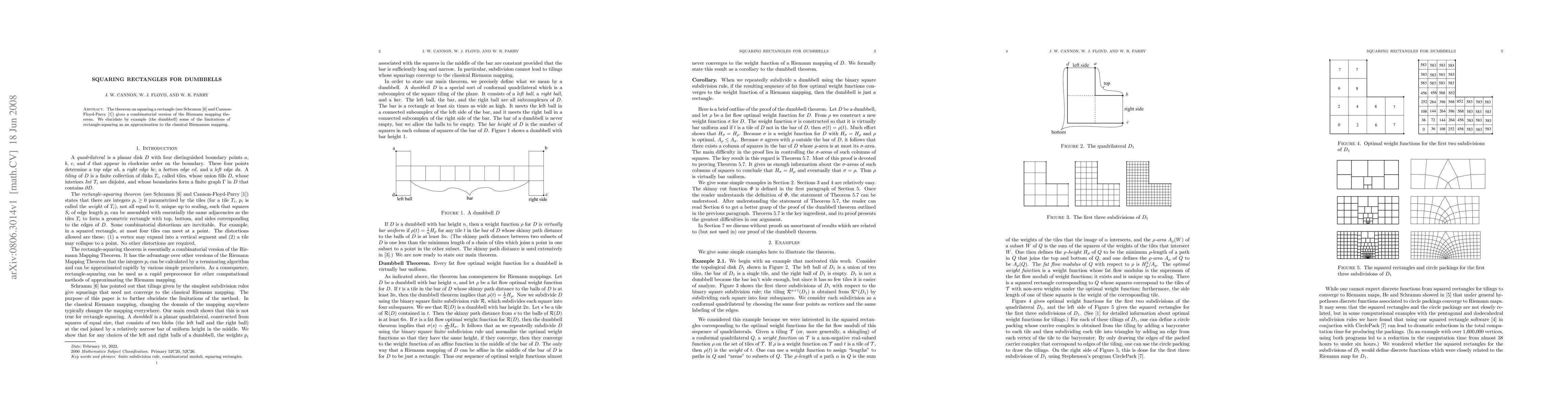 This paper explores the limitations of rectangle-squaring as an approximation to the classical Riemann mapping theorem, using the dumbbell shape as an example. It builds upon Schramm and Cannon-Floyd-Parry's tiling quadrilateral theorem, highlighting its combinatorial implications.