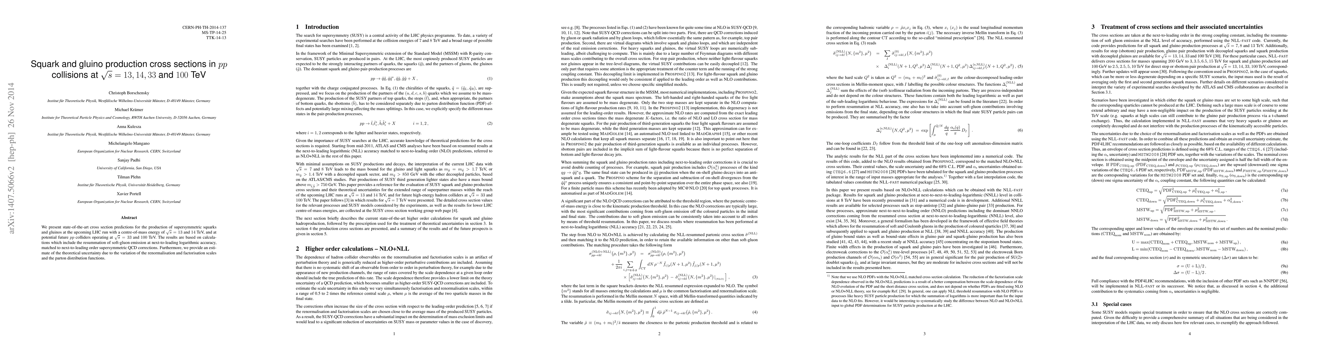 This research paper presents precise cross section predictions for producing supersymmetric squarks and gluinos in proton-proton collisions at various energy levels, including the upcoming LHC run and potential future colliders at 33 and 100 TeV. The calculations incorporate soft-gluon resummation to next-to-leading logarithmic accuracy, merged with next-to-leading order supersymmetric QCD corrections. The paper also estimates theoretical uncertainties from renormalization, factorization scale variations, and parton distribution functions.