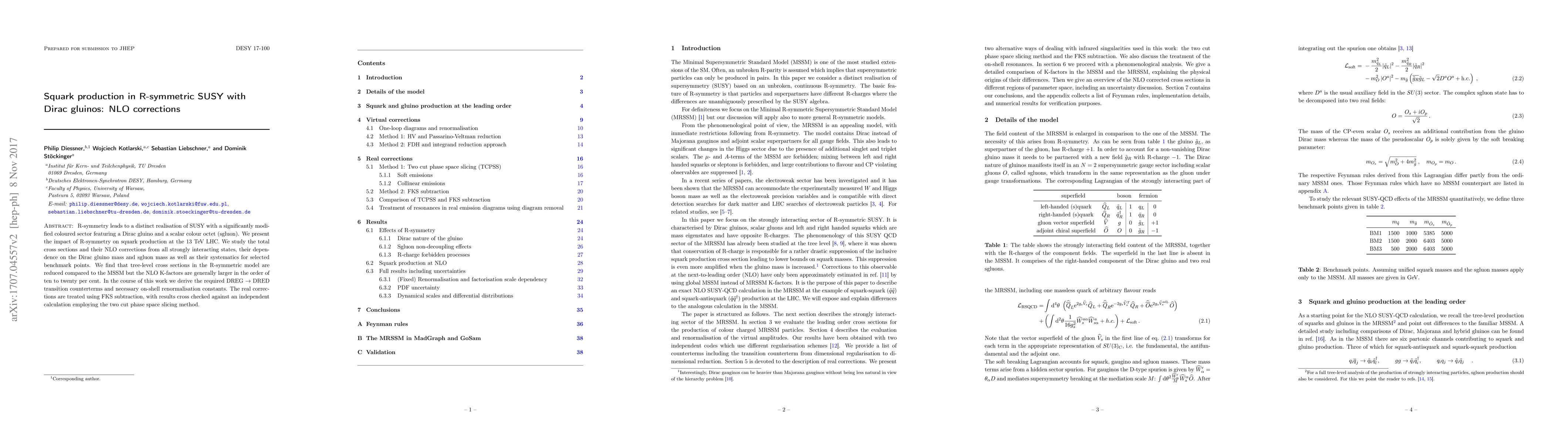 This paper investigates the impact of R-symmetry on squark production at the 13 TeV LHC within a SUSY framework featuring Dirac gluinos and scalar colour octets. It finds that tree-level cross sections are lower than in the MSSM, but next-to-leading order (NLO) corrections increase these by 10-20%.