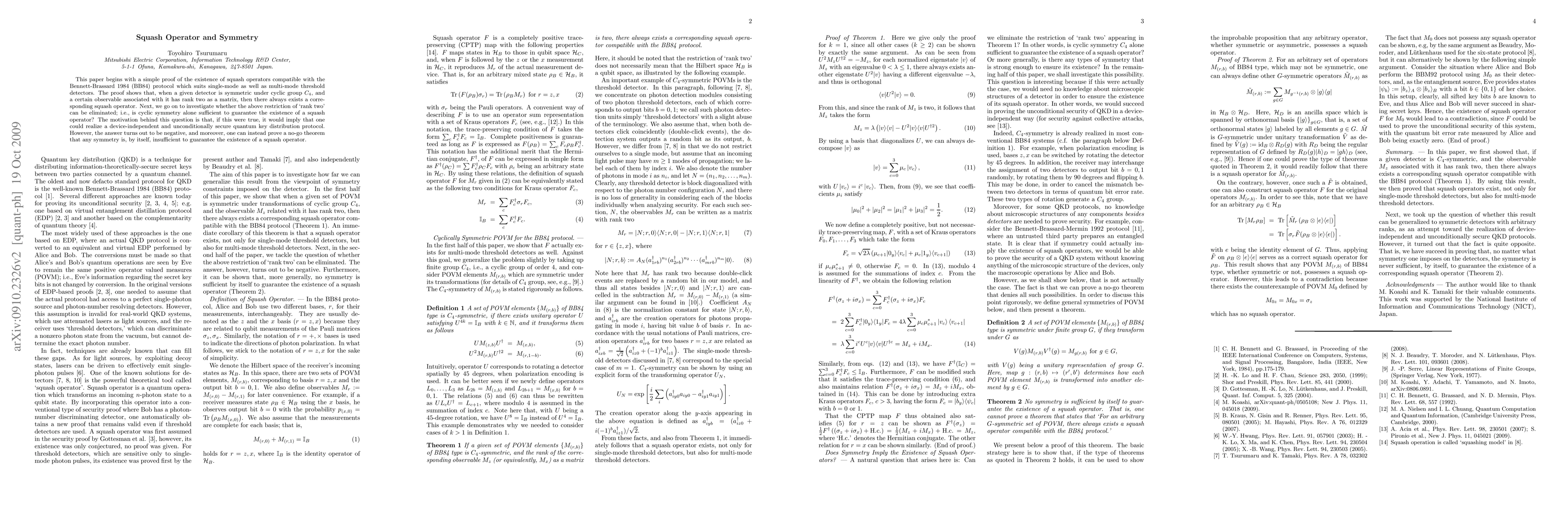 Researchers prove that cyclic symmetry alone is insufficient to guarantee the existence of a squash operator in quantum key distribution protocols, contradicting the possibility of a device-independent and unconditionally secure protocol. A proof of existence for compatible squash operators with certain detector symmetries also exists.