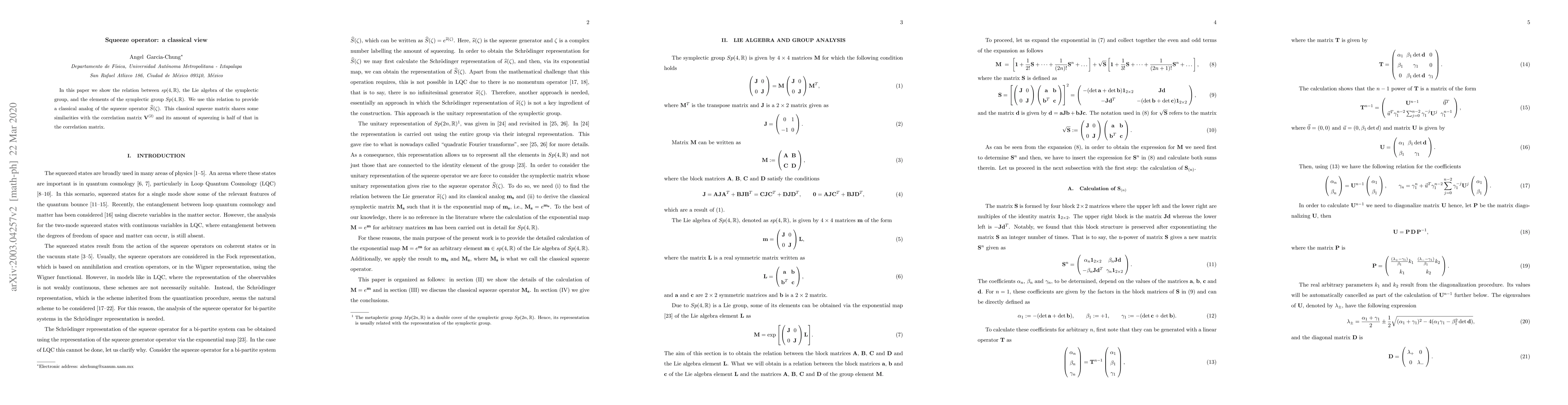 This paper establishes a connection between the symplectic group's Lie algebra $sp(4,\mathbb{R})$ and its group $Sp(4,\mathbb{R})$, using it to derive a classical analog of the quantum squeeze operator, which exhibits half the squeezing amount of the correlation matrix ${\bf V}^{(2)}$.
