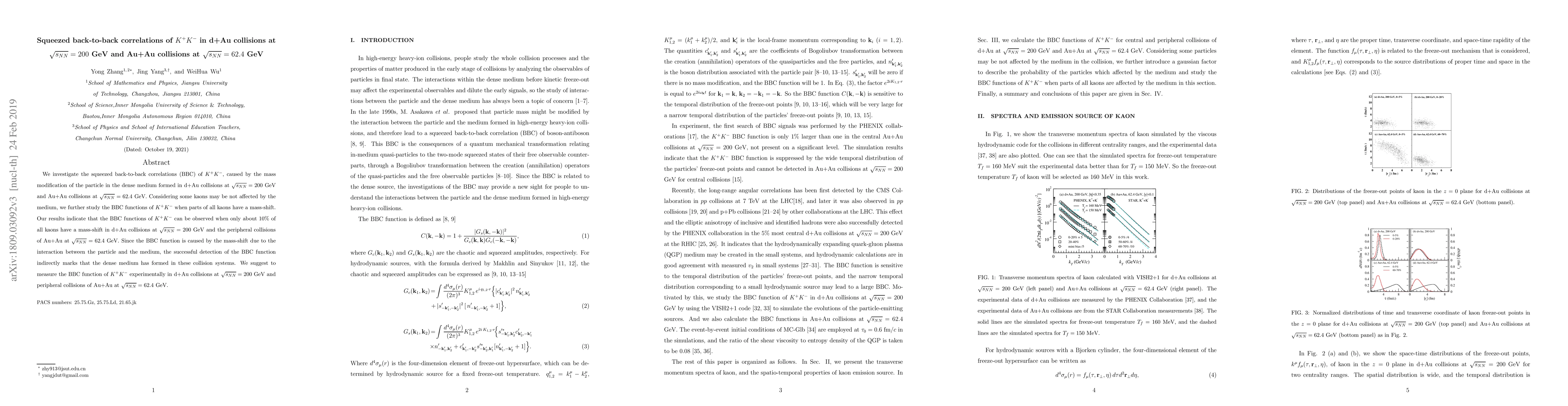 We investigate the squeezed back-to-back correlations (BBC) of $K^+$$K^-$, caused by the mass modification of the particle in the dense medium formed in d+Au collisions at $\sqrt{s_{NN}}=200$ GeV and Au+Au collisions at $\sqrt{s_{NN}}=62.4$ GeV. Considering some kaons may be not affected by the medium, we further study the BBC functions of $K^+$$K^-$ when parts of all kaons have a mass-shift. Our results indicate that the BBC functions of $K^+$$K^-$ can be observed when only about 10$\%$ of all kaons have a mass-shift in d+Au collisions at $\sqrt{s_{NN}}=200$ GeV and the peripheral collisions of Au+Au at $\sqrt{s_{NN}}=62.4$ GeV. Since the BBC function is caused by the mass-shift due to the interaction between the particle and the medium, the successful detection of the BBC function indirectly marks that the dense medium has formed in these collision systems. We suggest to measure the BBC function of $K^+$$K^-$ experimentally in d+Au collisions at $\sqrt{s_{NN}}=200$ GeV and peripheral collisions of Au+Au at $\sqrt{s_{NN}}=62.4$ GeV.